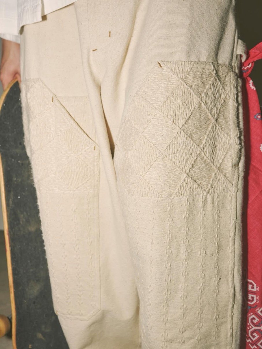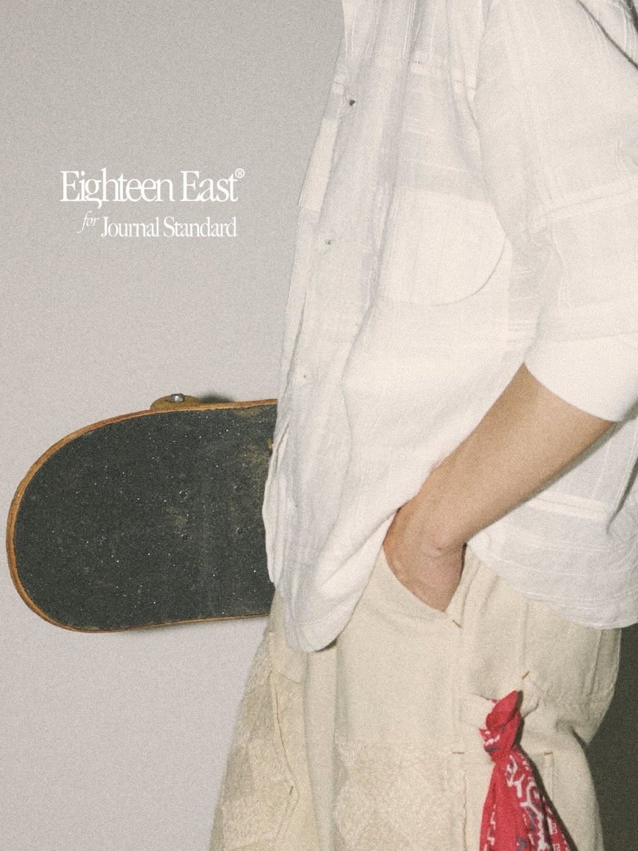 ニューヨーク・エリザベスストリートより誕生した〈EIGHTEEN EAST〉。手仕事の温もりを核に据えながらも、ストリートやアウトドアのジャンルを横断するものづくりは、類のない立ち位置となっている。JOURNAL STANDARDとの初となるカプセルコレクションでは、全てのアイテムがインド製となっており、手織りのカディコットンやブロックプリント、泥染めなどインドの伝統技法を随所に入れた。
