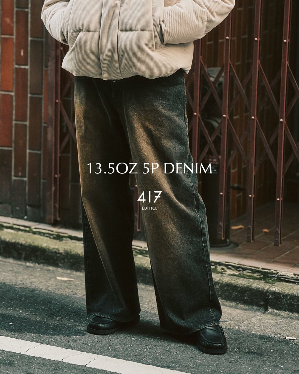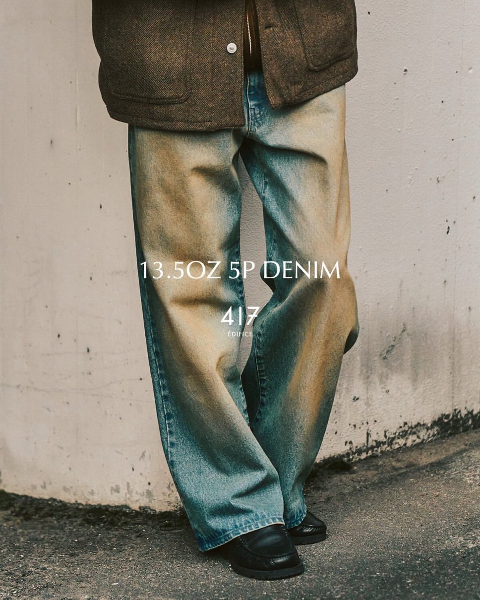 417エディフィス『13.5オンス 5ポケット デニム』が登場。お手頃価格で“こなれた雰囲気”を楽しめるワイドストレートシルエットな一本。【2025AW / 25030312525040】