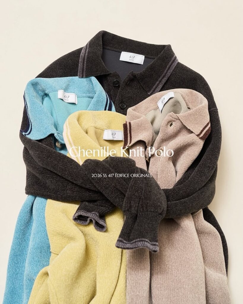 417エディフィスから、ふんわりとした風合いが魅力のモールニットポロシャツが登場。【2026SS / 25080312500040】