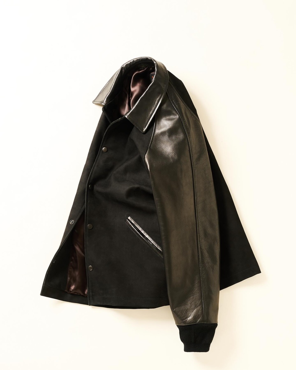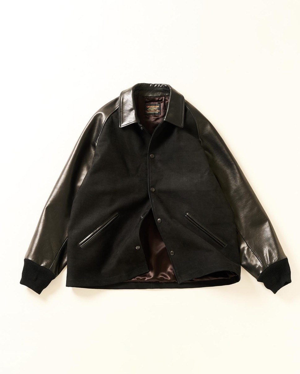 ボディーはキメの細かいマットなヌバックレザーに、袖はシボと艶が絶妙なバッファローカーフを使用。シンプルながらシックで大人のアワードジャケットに仕上がっている。定番のデニムやチノパン、スラックスと幅広いスタイリングにおすすめのアイテムだ。