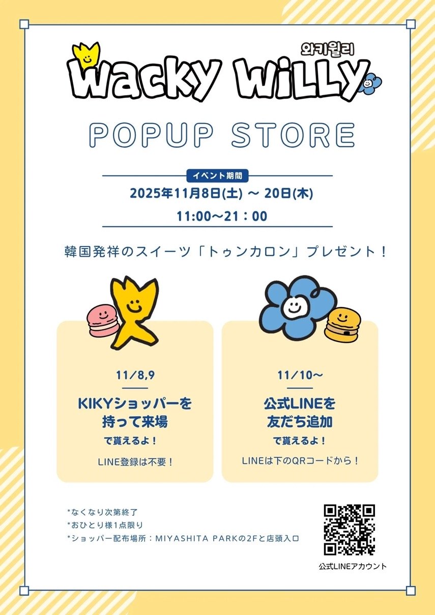 株式会社MXN JAPAN(本社:東京都品川区、代表取締役:崔 瀚友)がマーケティングを代行するブランド「Wacky WiLLy(ワッキーウィリー)」が日本初の単独上陸を記念して、MIYASHITA PARK にて期間限定ポップアップストアを開催。トレンドとカルチャーを愛するみんなのためのカジュアルブランドWacky WiLLy(ワッキーウィリー)「おどけた・ユーモラスな」という意味を持つ”Wacky”と、架空の人物”WiLLy”を組み合わせた造語で、直訳すると「おどけ者のウィリー」を意味している。また、別の意味として「完成を盛り上げる熱狂的な観客」を意味する“Whacky Willies”というニュアンスも含んでいる。