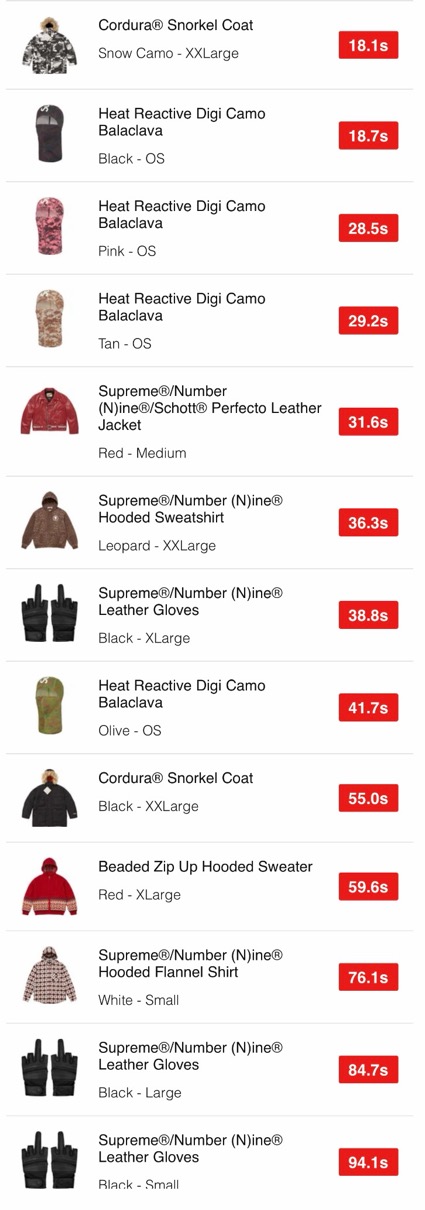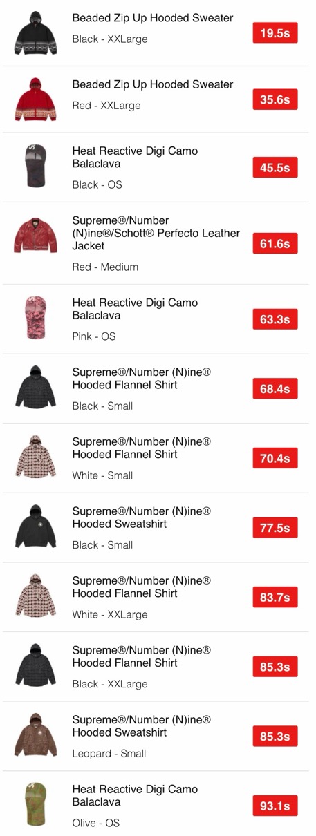 シュプリーム 2025年秋冬コレクションWEEK16 海外オンラインの完売スピードランキングが公開。【2025FW】