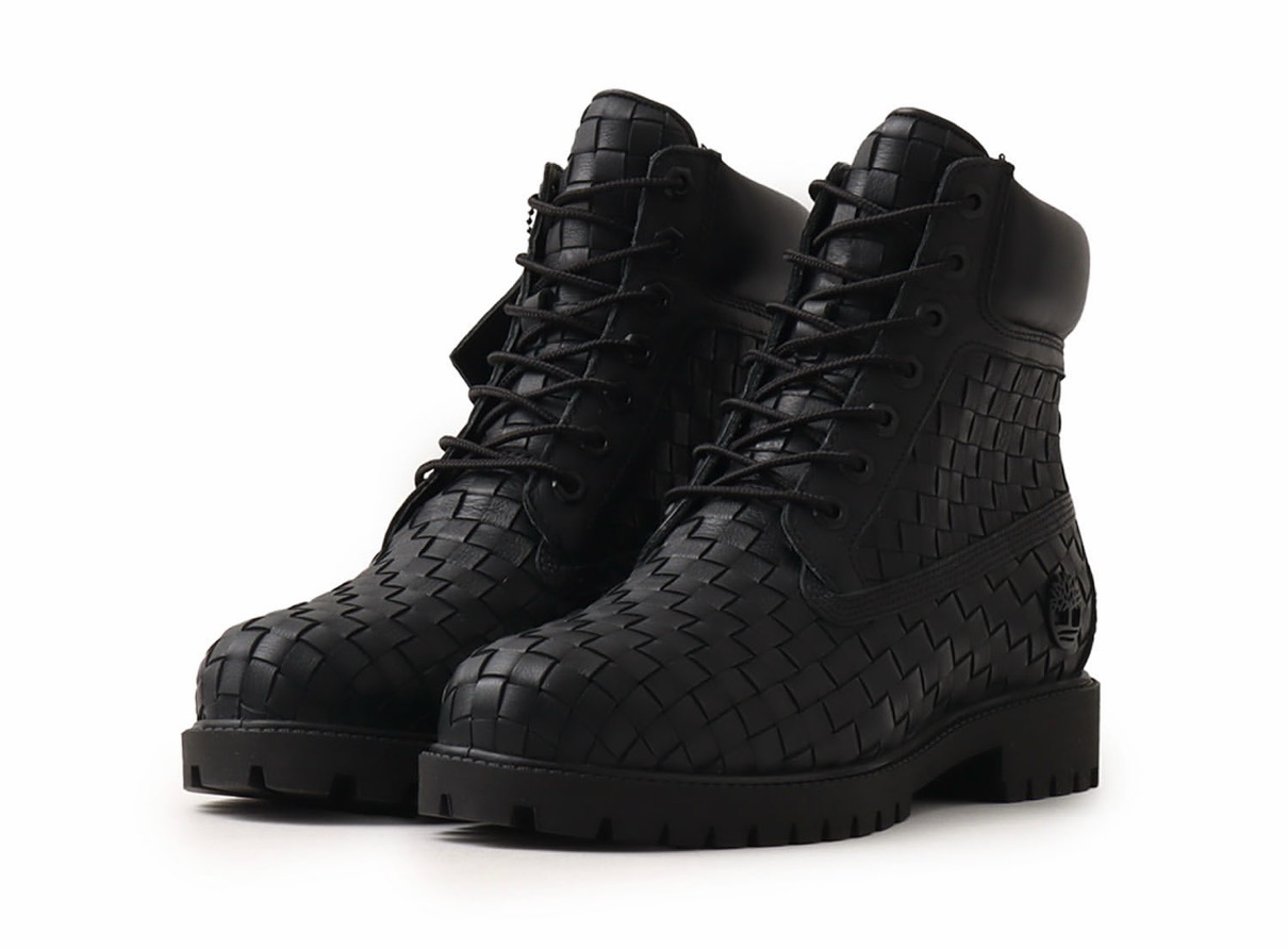 ボッテガ風の高級感溢れる格子状レザーの新作 ティンバーランド『6インチプレミアムウーブンブーツ “ブラック”』が登場。[a6fd6-epv]