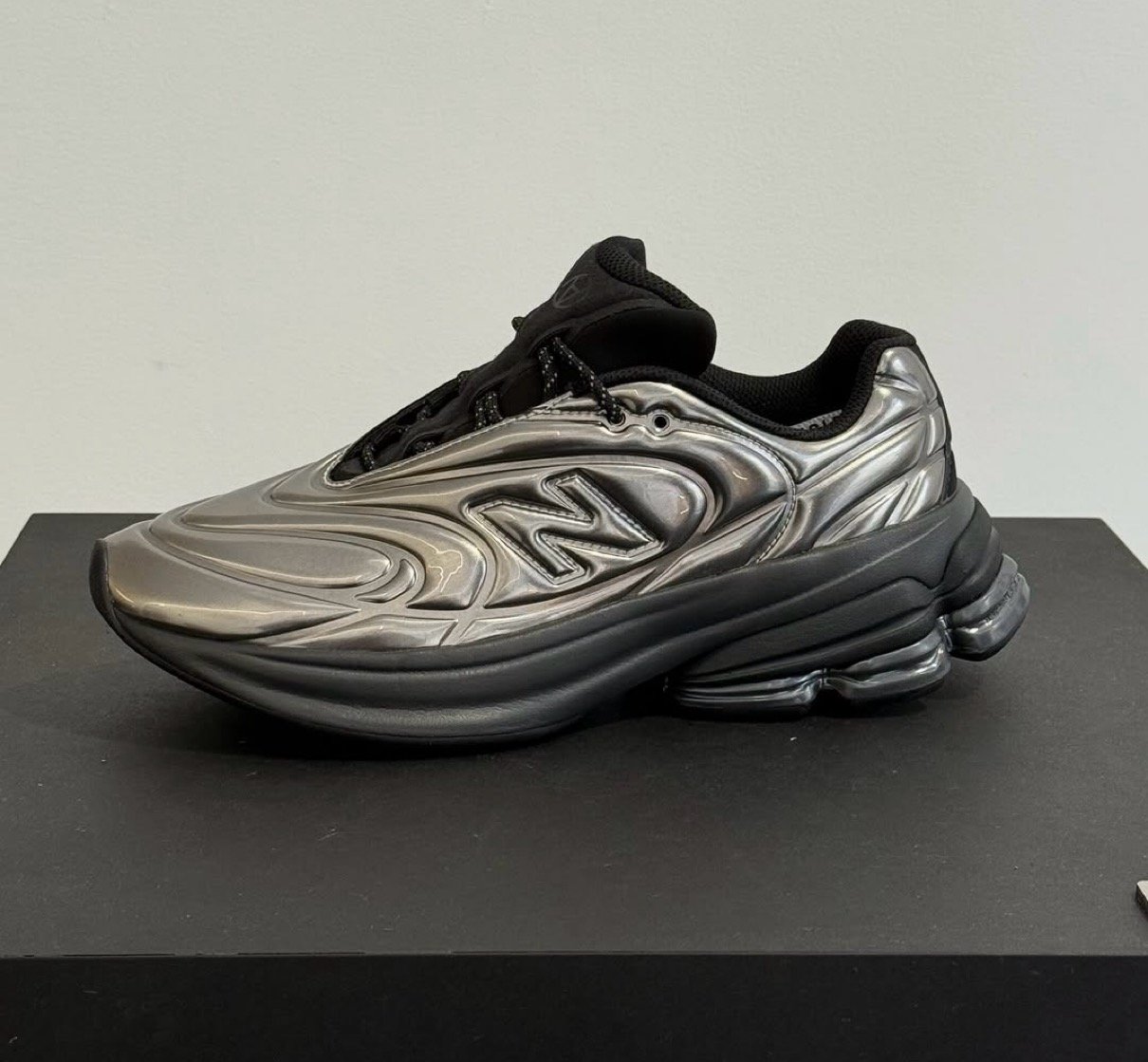 スラムジャム x ニューバランスによるコラボレーションから、フューチャリスティックな新型モデル『5030』が登場。一体成形の近未来型フォルムのメタリックアッパーに流れるようなデザインのミッドソールを纏い、ソールのヒール部には、ABZORB+ABZORB SBSクッショニングテクノロジーを組み合わせ、優れたクッション性を発揮。シュータンとヒールにはスラムジャムのロゴが配置されている。なお、本品はサンプル品のため、最終製品はアッパーの光沢感が若干異なるとのこと。詳細については今後の続報を待とう。