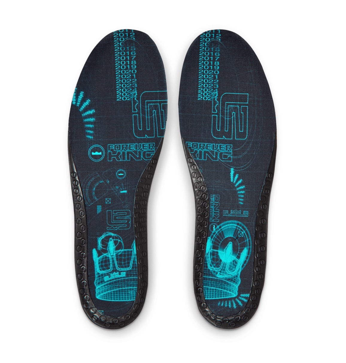 今作ではレブロンのLAとの繋がりを祝し、ハリウッドの魔法を象徴するグリーンスクリーンをイメージしたAF1をデザイン。レンズ状のアッパーは動きに合わせて変化し、暗闇で光るソールとスウッシュの輪郭が鮮やかなコントラストを添える。大胆なシューズ内部には、特殊効果のレンズを通して見えるキング・ジェームズの王冠をあしらったソックライナーを採用。ドロップインフォームミッドソールとヒール部のズームエアを搭載し、驚異的な快適性を実現している。