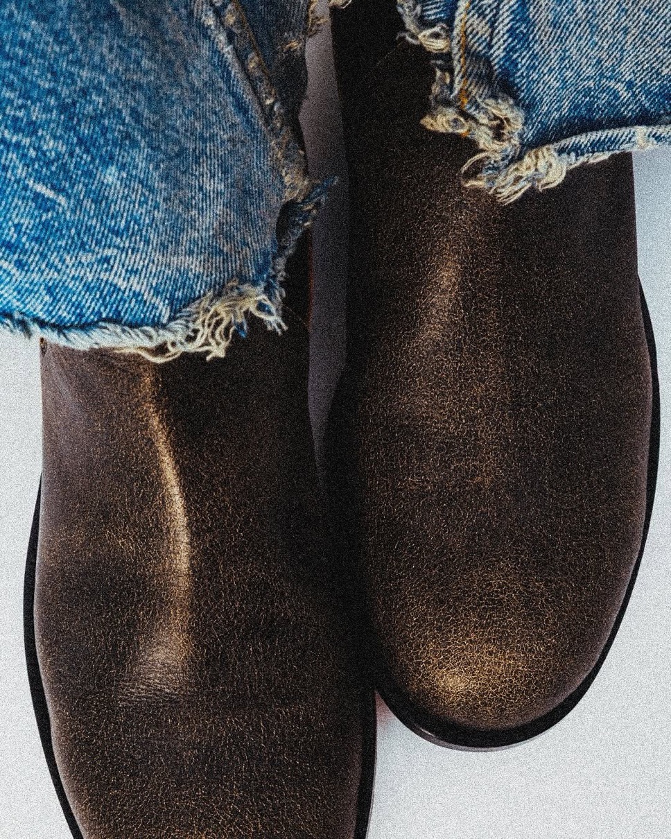 〈PADRONE(パドローネ)〉の定番モデル「SIDE GORE BOOTS(サイドゴアブーツ)」をベースに、素材使いから再構築した〈BEAMS〉別注モデルが登場。〈PADRONE〉の確かなクラフトマンシップと、〈BEAMS〉ならではの視点が融合した特別なモデルに仕上がった。ミニマルで完成度の高いデザインはそのままに、素材選定によって存在感を高めたエクスクルーシブな一足。アッパー全体には、茶芯のクラックレザーを採用。履き込むことで表面のブラックが徐々に剥がれ、下地の茶芯が現れることで、奥行きのある経年変化を楽しむことが可能。クラック加工による独特の表情が、初めからこなれた佇まいを演出しつつ、時間とともに着用者それぞれの個性を映し出す。