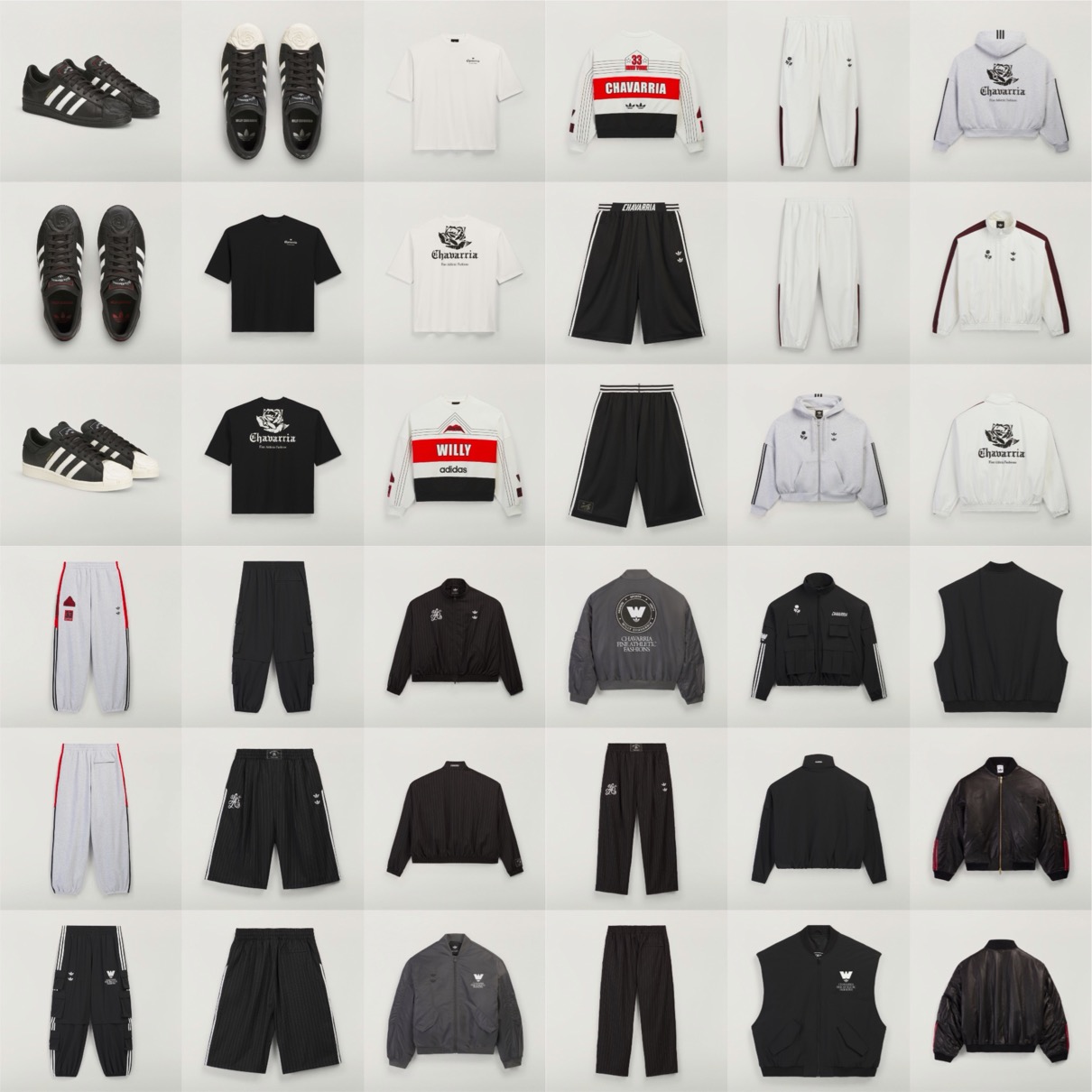 2025SSシーズンからスタートした Willy Chavarria x adidas Collectionは、Willy Chavarriaの観点から現代的なファッションの要素をリンクし、LAサウスセントラルのチカーノの伝統に敬意を表しながら、チャバリアとアディダスの融合を表現している。アーカイブに根ざしたアスレチックな要素と、 Chavarria 特有のフォルムと感性が融合した今回のコラボレーションでは、 誇張されたプロポーション、上質な素材、触感のあるディテールが前面に押し出され、 揺るぎない自信に満ちた独自性を表現。
