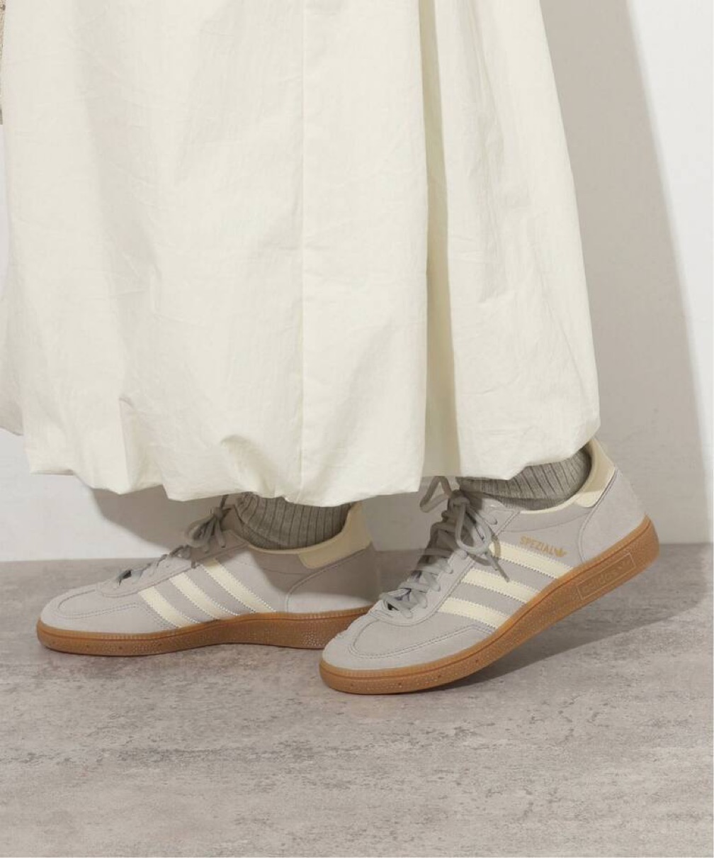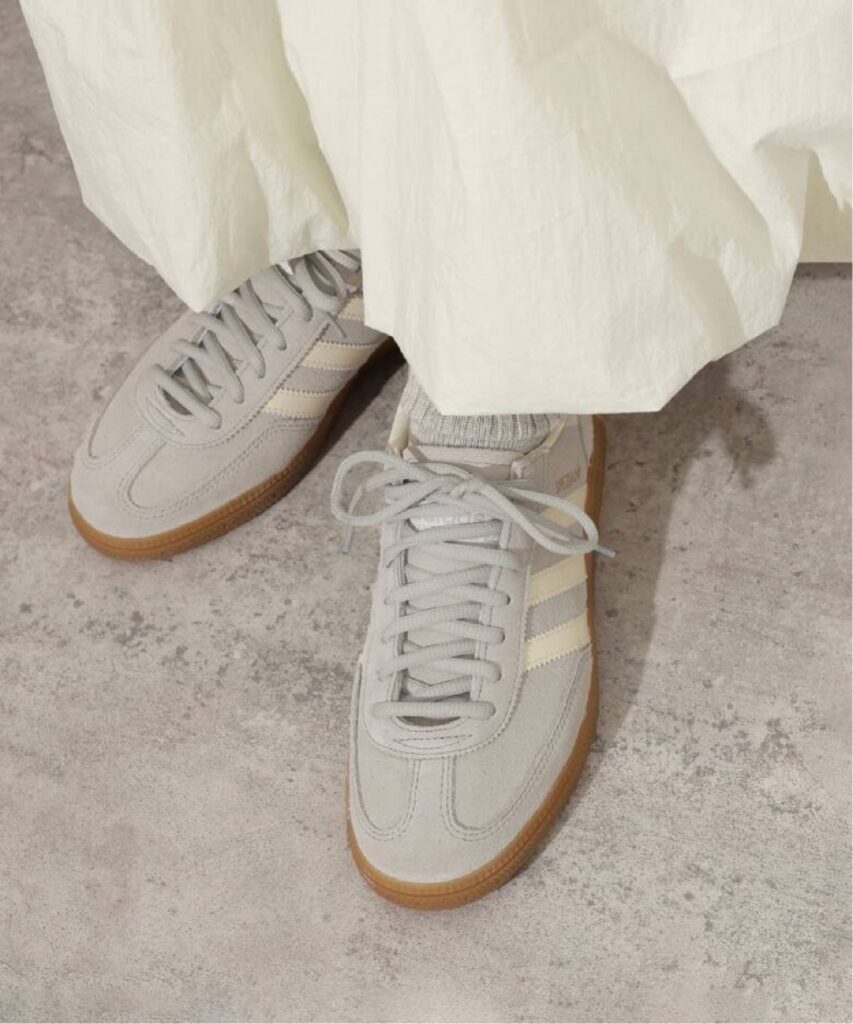 1979年にプロハンドボール選手向けトレーニングシューズとして開発された『HANDBALL SPEZIAL(ハンドボール スペツィアル)』は、T字の切り替えしのトウが当時のadidasらしい特徴ながら、ヒールタブ中央の先端に重なるようにヒールのオーバーレイが取り付けられた仕様とオーバルシューレースが特徴的なディテール。今作では柔らかいグレーのスウェードアッパーにガムソールを組み合わせてシューズを構築。モダンなエレガンスを感じさせるステッチをあしらった洗練されたデザインな一足となっている。