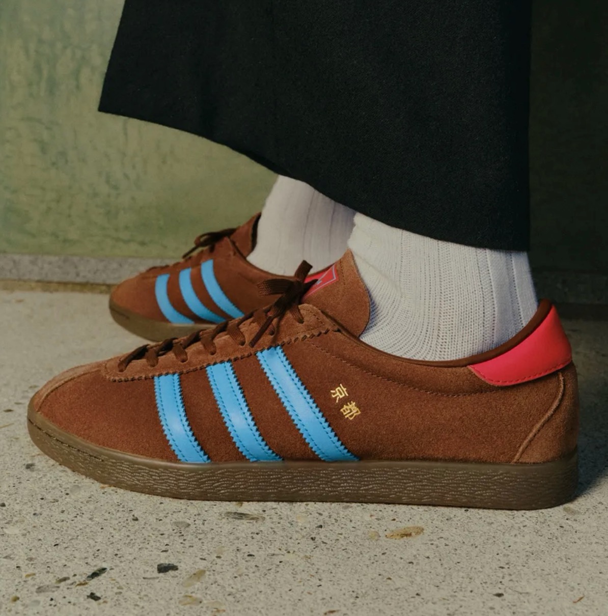 ベースモデルにはadidasの名品TOBACCO(タバコ)をセレクト。通常のTOBACCOにはスタイル名が入らないところ、本モデルでは札幌モデルと同様に、スリーストライプス横に漢字で“京都”の文字をあしらった特別仕様。日本のBILLY’SとUKのsize?がそれぞれ“京都”をイメージしてカラーリングを行ったオリジナルモデル。
