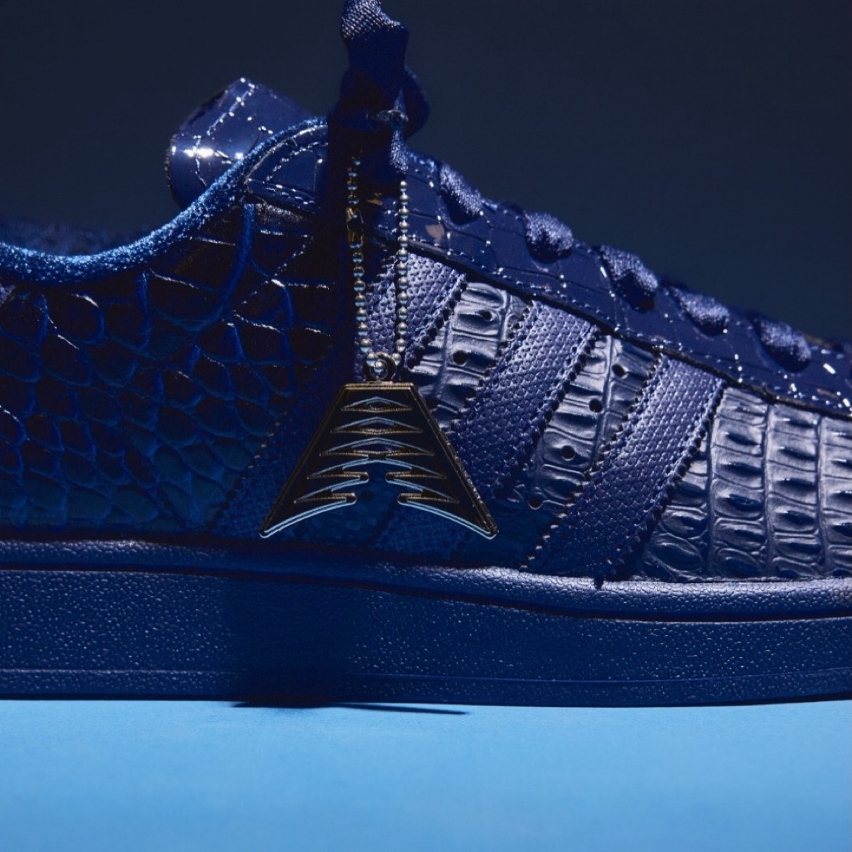 新進気鋭のスーパースターが、アディダスのアイコンシューズ「スーパースター(SUPERSTAR)」をアレンジ。クラシックなシルエットを洗練されたラグジュアリー仕様に昇華した本モデルは、ネイビーのクロコダイル風テクスチャーを施したアッパーが特徴的。エドワーズはさらに、靴ひも上部近くに独自のカスタム“Apex”ロゴを配置。このコラボレーションはエドワーズとアディダスの関係をさらに深いものにし、大胆で自信に満ちた彼の美的感覚を体現している。