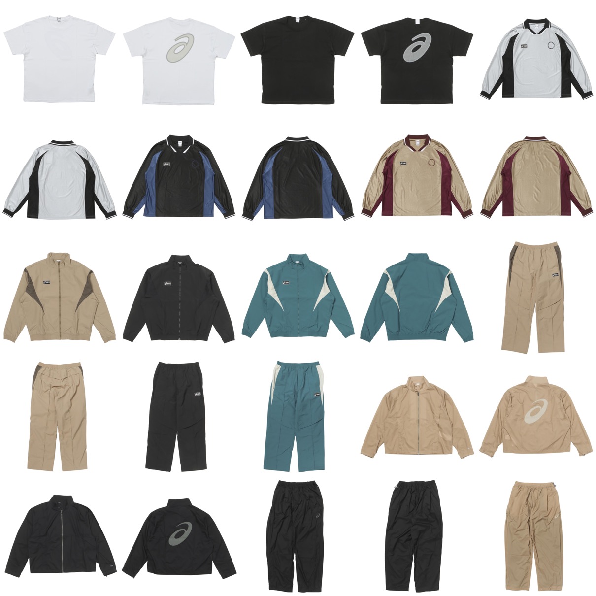 アーカイブの Asics トレーニングウェア、サッカーウエアから着想を得たASICS SportStyle アパレルには、カットソー仕様のゲームシャツ、ナイロンのセットアップに加え、PERTEX EQUILIBRIUMを使用したセットアップやTシャツ、キャップなどがラインナップ。