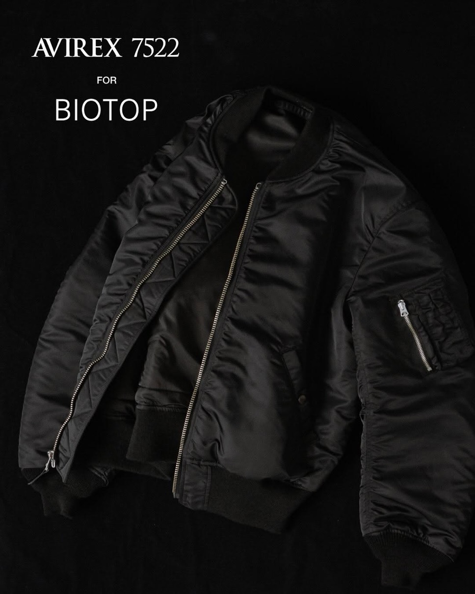 ミリタリーブランド AVIREX(アヴィレックス)のエクスクルーシブライン『AVIREX 7522』と、アパレル大手JUNが展開するライフスタイル型ショップ『BIOTOP(ビオトープ)』による別注MA-1ジャケットが、国内2026年1月10日(土)に発売予定。BIOTOP公式オンラインストアでは2025年12月30日(火)より先行予約を実施する。