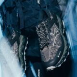 バッド・バニー、本名はBenito Antonio。今作ではBenitoの子供時代お気に入りだったキャッチボールゲーム“Catch and Throw”から着想。ベージュ、カーキ、ブラックを基調としたアッパーには、スリーストライプスのパステルオレンジ、ヒールクリップのブルー、フォアフットのサーモン、トップアイレットのバイオレット、ヒール部のインナーブーティーやシュータンラベルに配されたバッド・バニーの“第3の目”のグリーンなどカラフルなアクセントを施し、素材はレザー、ネオプレン、バリスティックメッシュなど異素材を組み合わせて構築している。