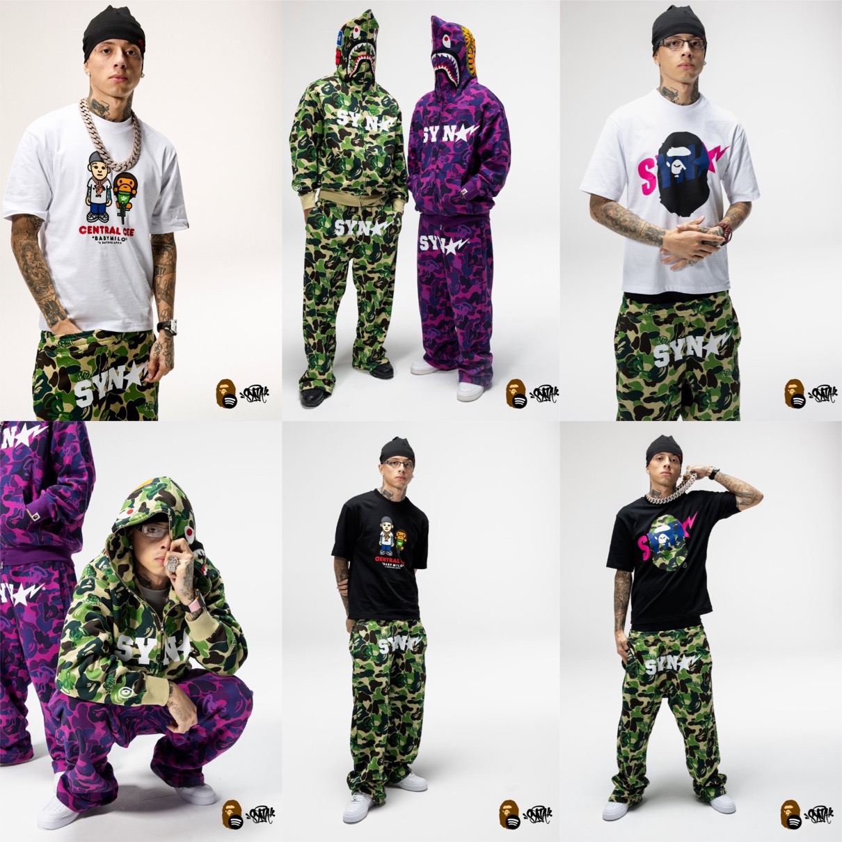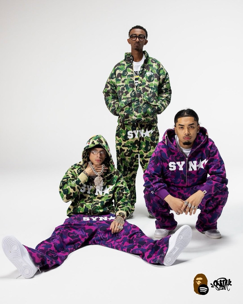 日本発のストリートブランドBAPE®(ベイプ)こと「A BATHING APE®(ア ベイシング エイプ)」と、ストリーミングサービス「Spotify(スポティファイ)」、UKラップ界の革命児 Central Cee(セントラル・シー)が手がけるブランド「SYNA WORLD(シナ・ワールド)」によるコラボコレクションが、国内2025年11月25日(火)より発売予定。