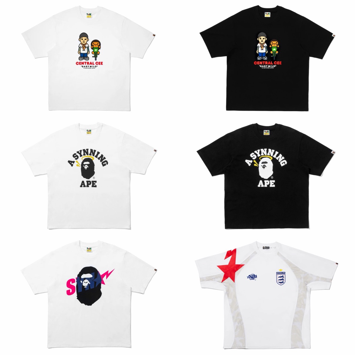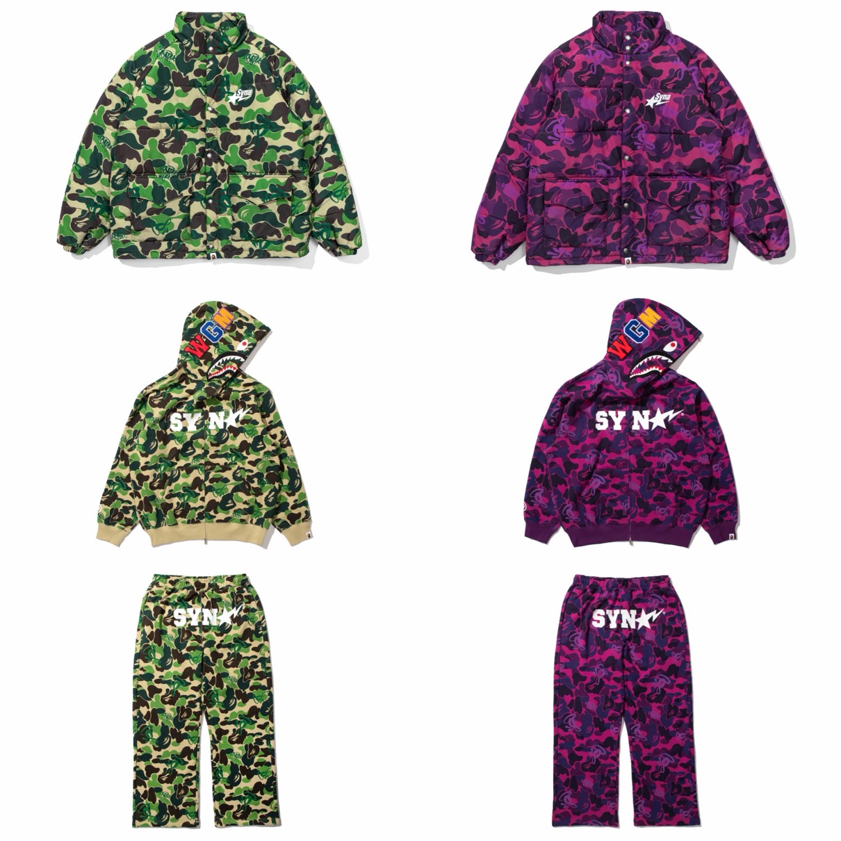 本コレクションはBAPE STORE®︎ 原宿、BAPE STORE®︎ 渋谷、BAPE STORE®︎ 大阪、BAPE STORE®︎ 京都、BAPE®オンラインおよびSYNA公式オンラインストアにて販売予定。新たな情報は判明し次第随時更新予定なのでお見逃しなく。