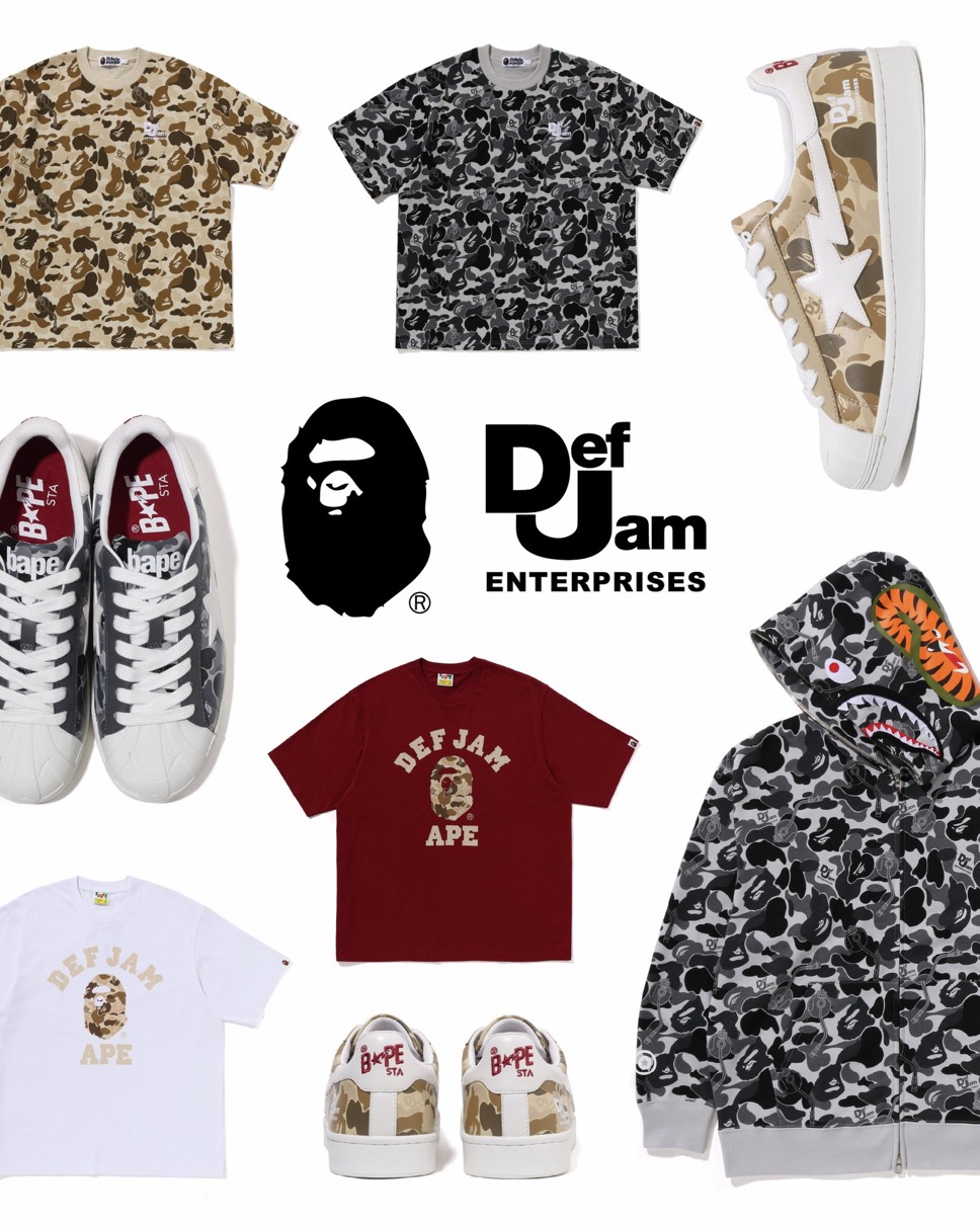日本発のストリートブランドBAPE®(ベイプ)こと「A BATHING APE®(ア ベイシング エイプ)」と、ヒップホップのスピリットとレガシーを受け継ぐカルチャーブランド『Def Jam Enterprises(デフジャムエンタープライズ)』によるコラボコレクションが、国内2025年10月18日(土)より発売予定。