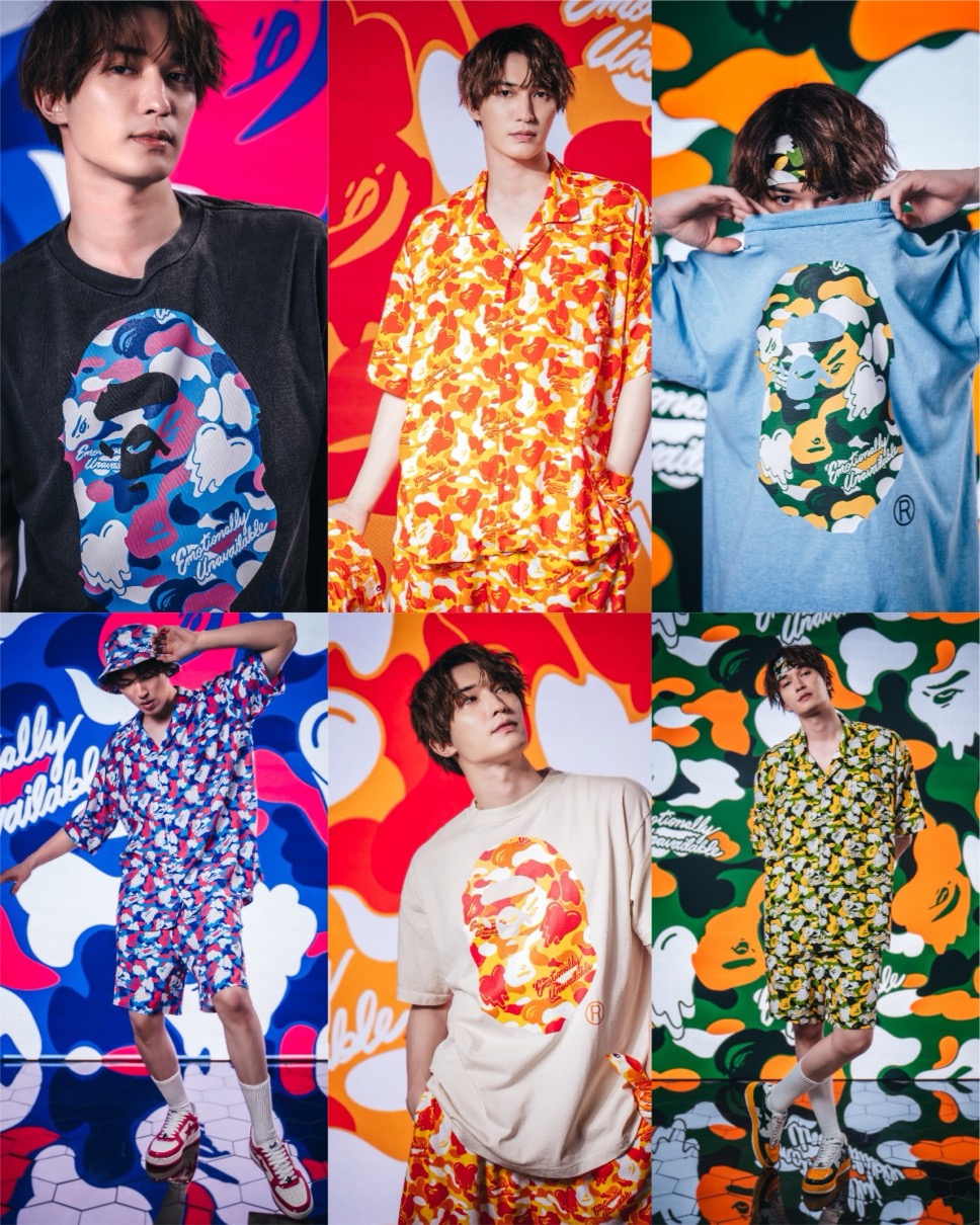 本コレクションは、ビーチを想起させるトロピカルなムードをベースに、アロハの開放感とストリートのエッセンスを融合。BAPE®のシグネチャーであるBAPE® CAMOに、EMOTIONALLY UNAVAILABLEのロゴとハートモチーフを組み合わせ、滴る雫のようなグラフィックで再構築したオリジナルカモ柄が特徴。さらにAPE FACEを落とし込むことで、両ブランドのアイデンティティを象徴するビジュアルに仕上げた。
