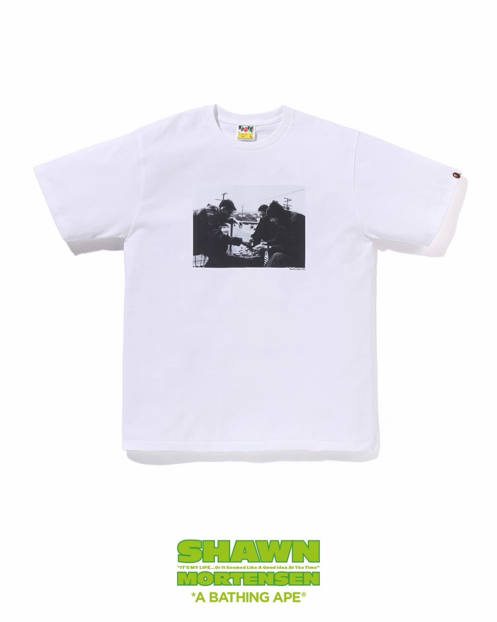 日本発のストリートブランドBAPE®(ベイプ)こと「A BATHING APE®(ア ベイシング エイプ)」が、伝説的な写真家・アーティストである Shawn Mortensen(ショーン・モーテンセンとの過去の関わりを称え、彼の代表的な作品をプリントしたフォトTシャツを復刻。国内2025年11月29日(土)より発売予定。