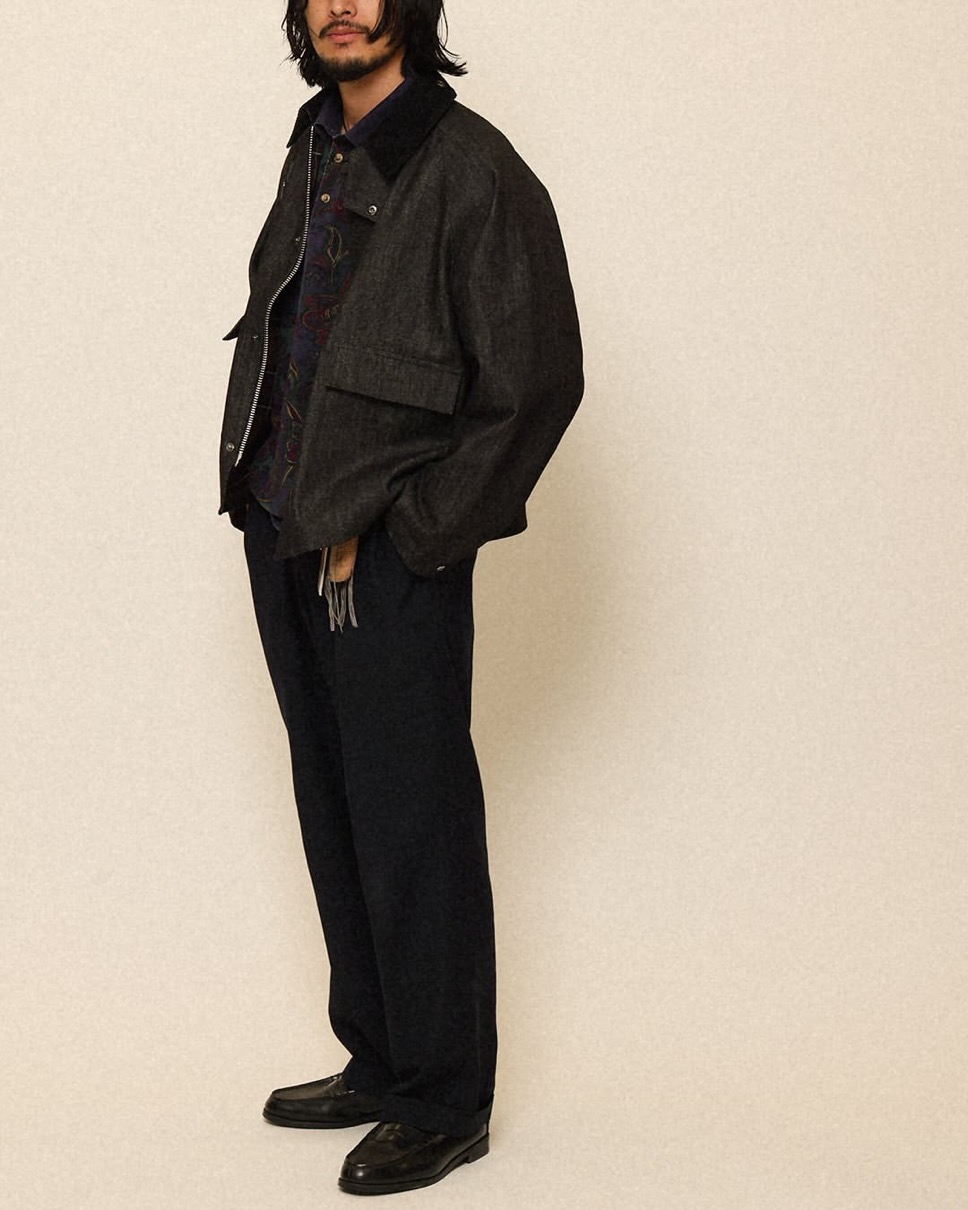 Barbourが誇る定番「スペイジャケット」を、relumeらしくモダンなデニム素材で別注。ヴィンテージライクな風合いの12オンスデニム生地は、着るほどに独特の経年変化を楽しめる、relumeらしい素材を採用。クラシックなディテールはそのままに、現代的なシルエットと素材感で再構築した。英国の伝統的なワークウェアの雰囲気を纏いながらも、都会的で洗練された着こなしを演出。袖口にアジャスタブルボタンを装備した、ストレートな袖シルエットで、ロールアップしやすいよう仕様に変更し、裏地に配された「バブアー」らしいチェック柄もさりげないアクセントに。羽織るだけで、いつものコーディネートが品格を帯びる逸品は、ブラックとネイビーの二色が展開。アクティブなシーンから、休日のリラックススタイルまで、幅広い着こなしを格上げしてくれる、relumeがお届けする特別なBARBOURだ。