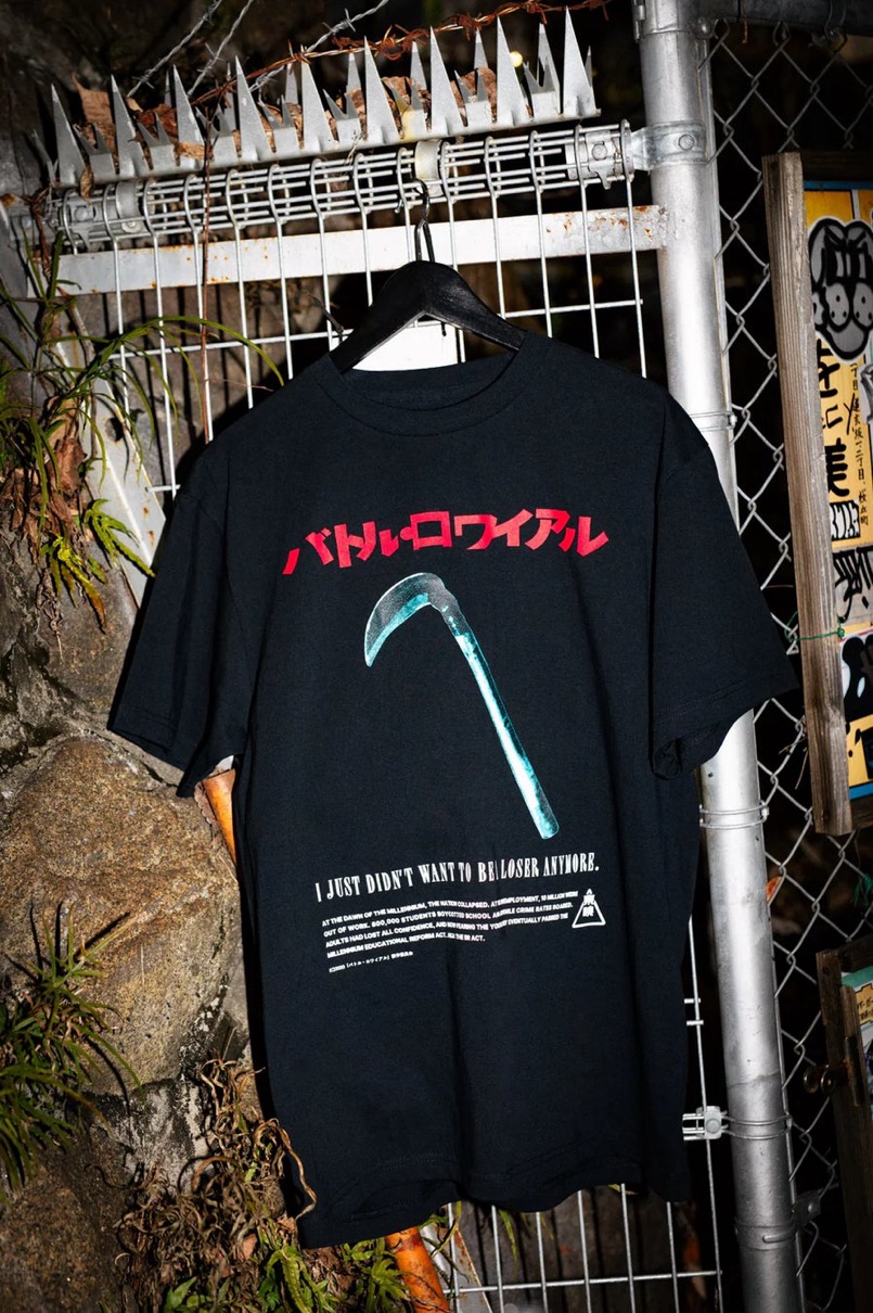 バトロワこと映画『バトルロワイアル』の<1日限定リバイバル上映>に併せ、教師・キタノが着ていたジャージをイメージしたセットアップやTシャツがリリース。