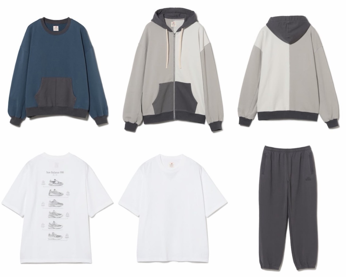 素材には、〈New Balance〉のスニーカーが持つ質実剛健なイメージに呼応する、アメリカ製ならではのタフさと風合いを備えたヘビーウェイトな生地と肉厚なコットン素材を採用。『クルーネックスウェット』、『ジップアップパーカー』、『Tシャツ』、『スウェットパンツ』の全4型を展開。シルエットはインラインモデルよりもゆとりを持たせ、スポーツウェアの枠を超えた、現代的なファッションとして楽しめるバランスへと昇華している。