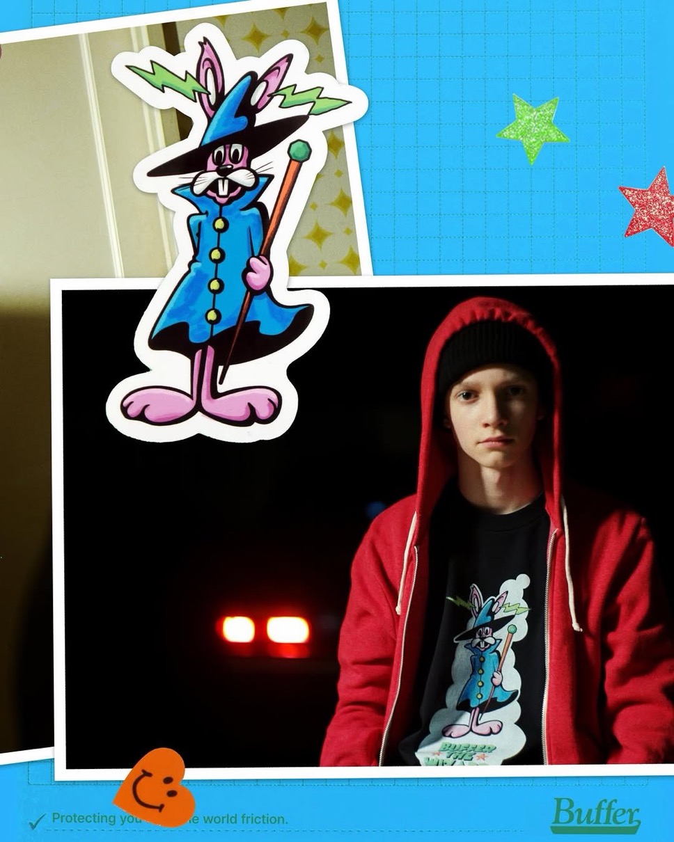 Bufferのメインキャラクターである、ウサギのBuffy(バッフィー)。ルイス・キャロルの名作『ふしぎの国のアリス』に登場する、白いウサギのベニーのようなBufferの道先案内人。まるで、映画の世界のごとく、これからバッフィーを追いかける冒険のイントロダクションとして、魔法使いのバッフィーはバックのBufferロゴに魔法をかけて変化をもたらした。