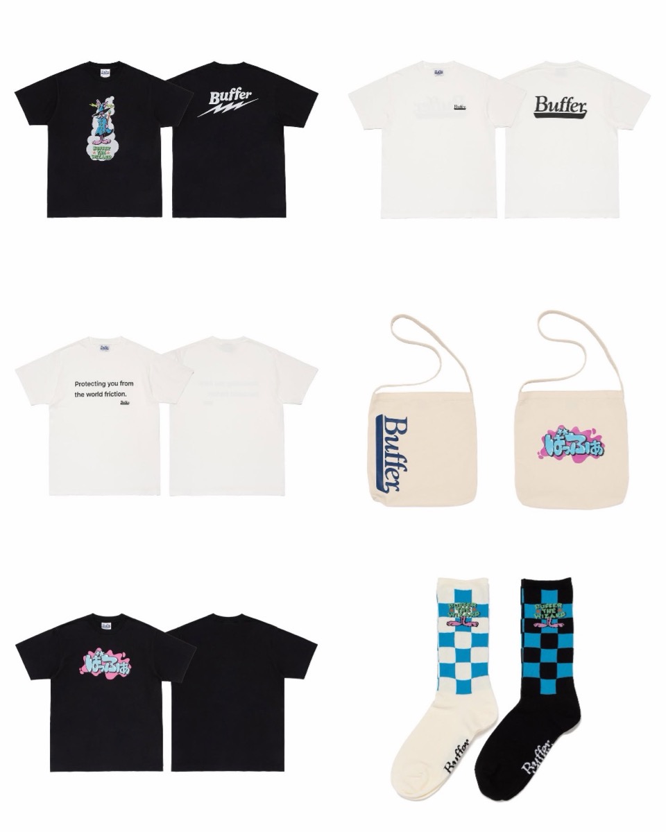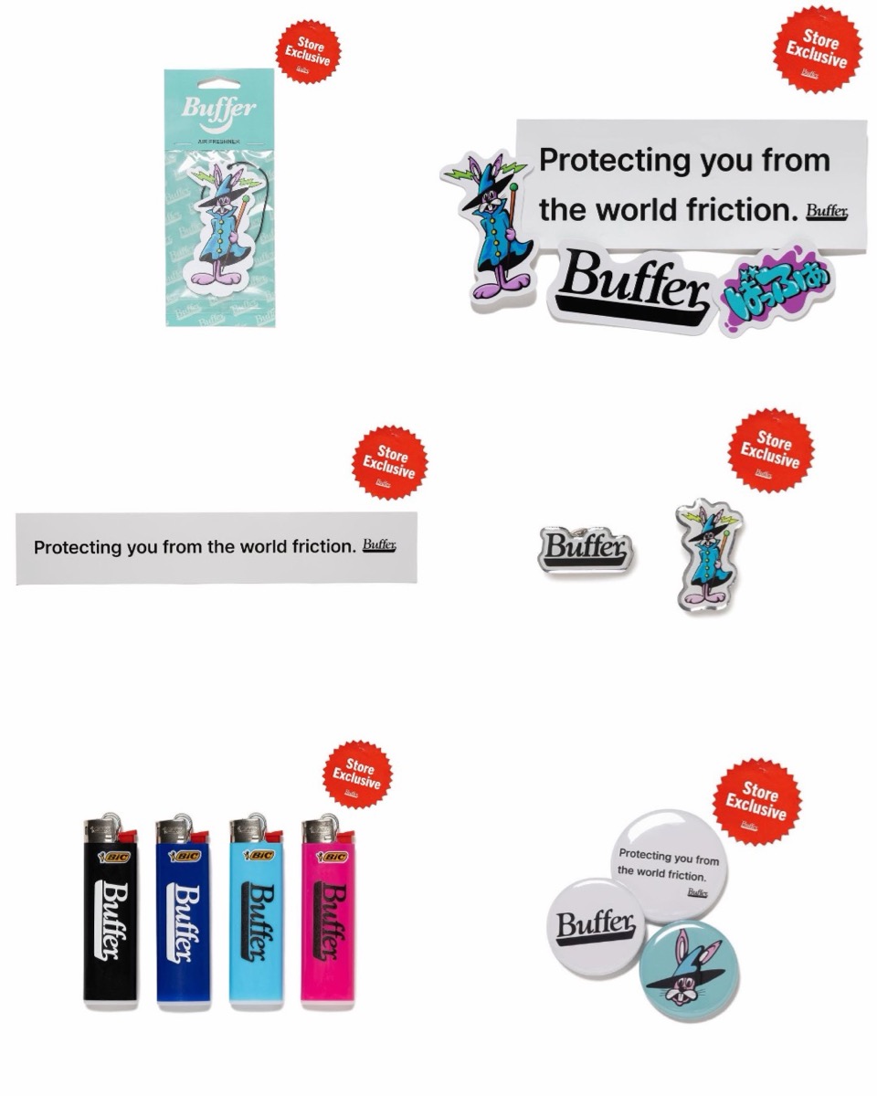 ファーストドロップに合わせ、東京・渋谷区神南エリアに、〈Buffer〉の路面店をオープン。店内には〈Buffer〉のプロダクトに加え、店舗限定企画として、神保町の古雑誌専門店「magnif」と、中目黒のカセットテープ専門店「waltz」による常設コーナーを設置。それぞれ〈Buffer〉のテーマに沿ってセレクトされた一点一点が、‘80s〜’90sのカルチャーを、ビジュアルや音、その質感を通して発信する。