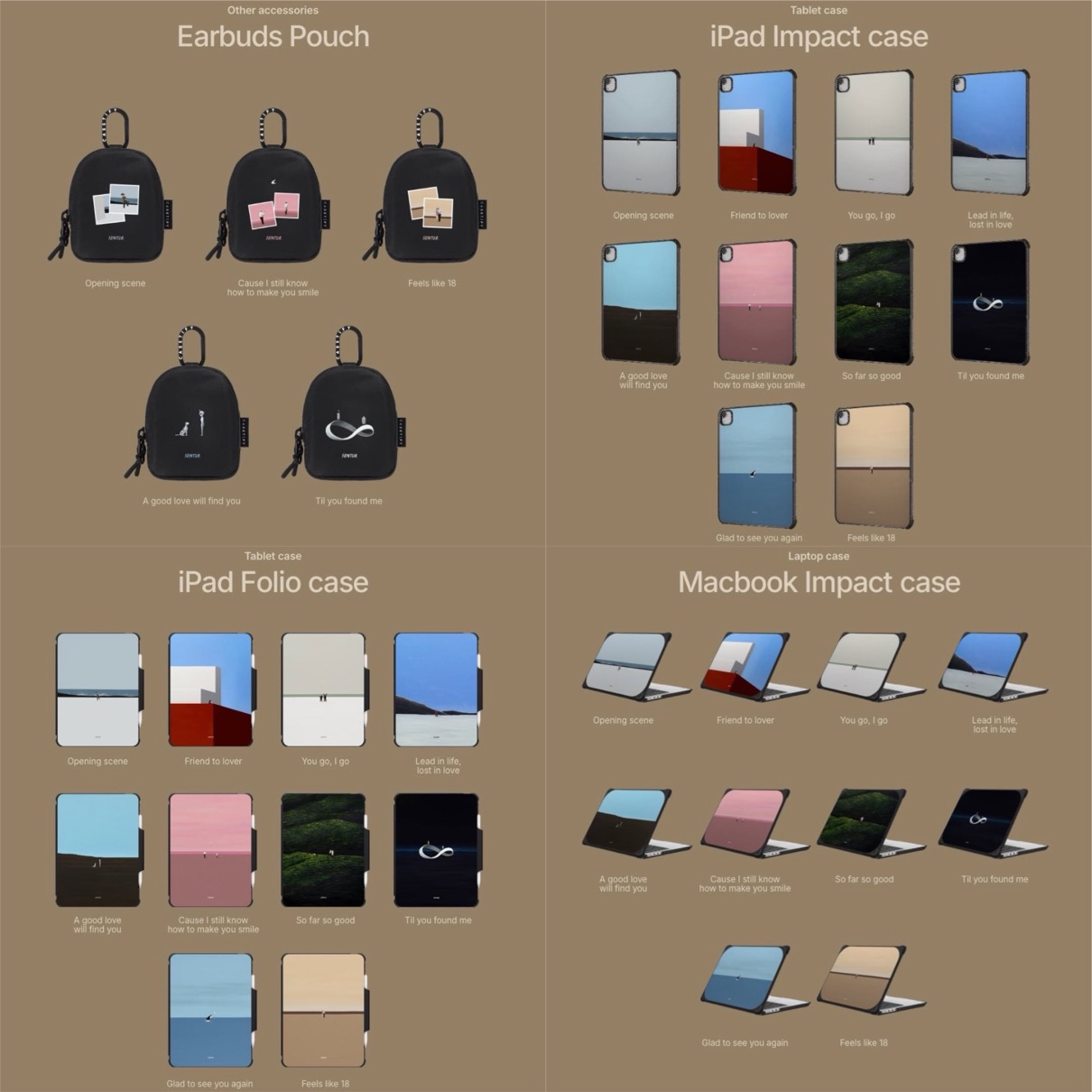 立ち止まったときに見えてくる、やさしい景色へ。バンコクを拠点に活動するアーティスト Suntur 氏とのコレクションが再び。なにげない仕草や、静かに浮かび上がる想い。つい見過ごしてしまいそうな感情に、そっと光を当てる Suntur のアートを落とし込んだテックアクセがラインナップ。