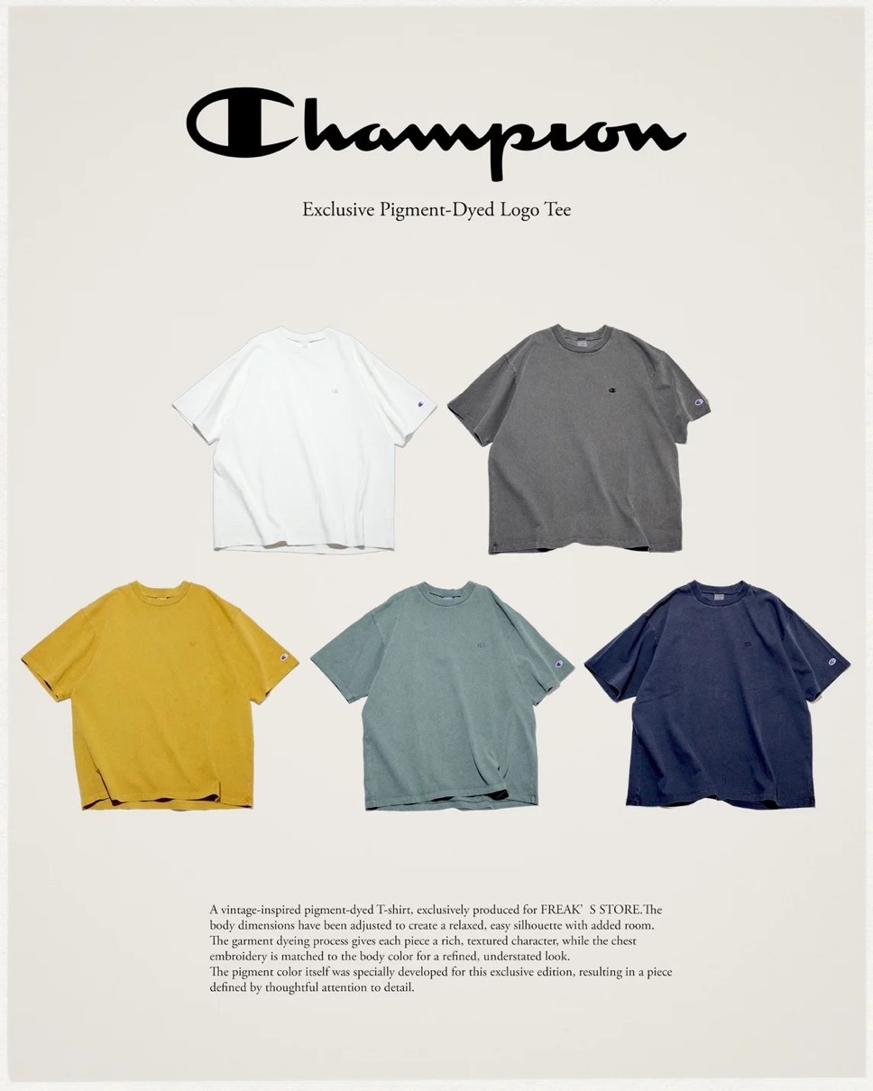 チャンピオン x フリークスストア 2026年春夏 ピグメント加工を施したヴィンテージライクなTシャツが登場。