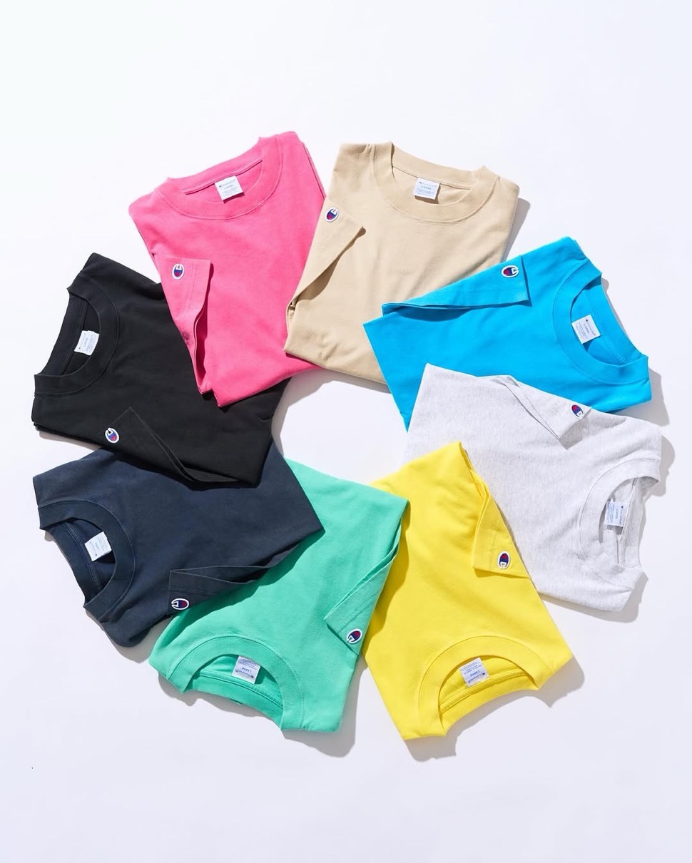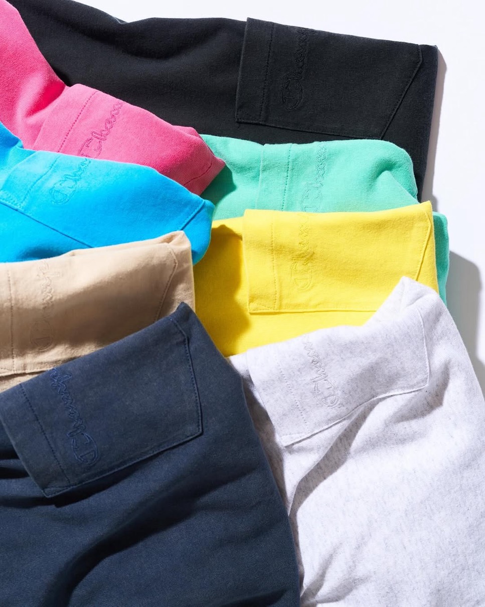 今回登場するのは、Championに別注を依頼した新作アイテム。絶妙なカラーリングがスタイルにアクセントをもたらす特別感溢れる一着。ワンポイントのロゴが特徴で、カラーはブラック、グレー、ベージュ、グリーン、ネイビー、ブルー、ピンク、イエローの全8色が展開する。