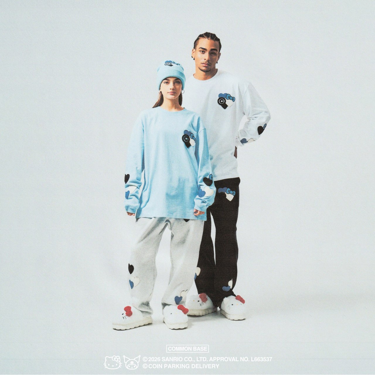 本コラボでは、ハローキティとクロミが、COIN PARKING DELIVERYの手によって、青い体と白い目を持つキャラクターへと新解釈。それらは身につけること、手に取ることができるプロダクトとして展開され、ぬいぐるみ(限定150個ずつ)やぬいぐるみキーホルダー、CPDのシグネチャーワークでもあるパッチデザインとハローキティのリボンを組み合わせたコラボアートワークを配したスウェットアイテム、Tシャツ、CAP、ビーニー、ナップサック等、様々なアイテムがラインナップ。制作はCOMMON BASEが担当している。