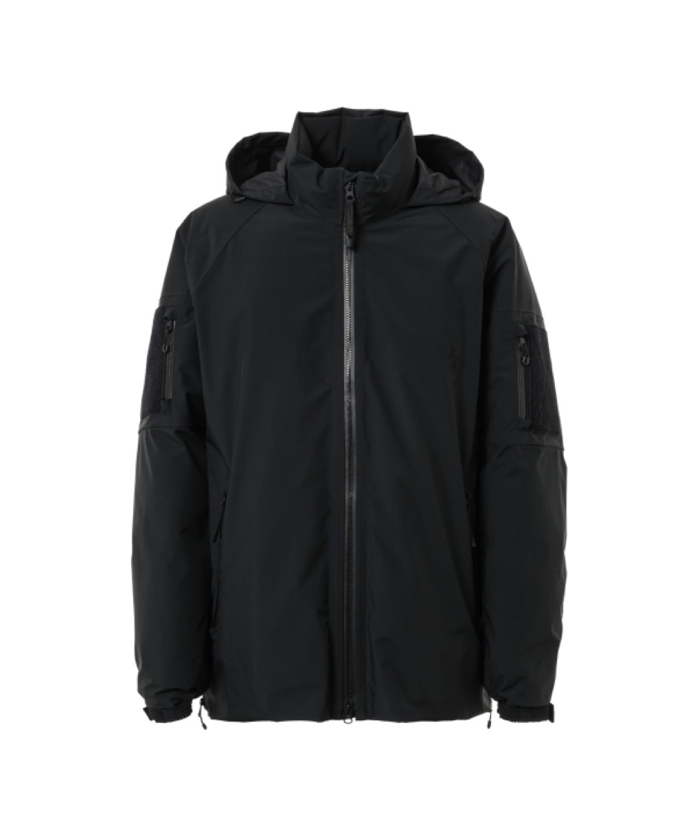 〈Goldwin(ゴールドウイン)〉のオリジナルブランドとの初コラボレーションによるダウンジャケットはミリタリーの本来ソフトシェル素材を使用して作られるジャケットをダウンジャケットにアップデートしたデザイン。両腕のベルクロパネルや襟元の収納式フードなどミリタリージャケットならではの本格的なディテールが特徴で、素材には耐久性・防水性に優れたナイロンタフタGORE-TEXが使用されており、デザインに機能性もプラスされたコラボレーションならではの一着。カラーはブラックとグレーの2色がラインナップし、ブラック1色展開のシャツダウンも同時展開する。