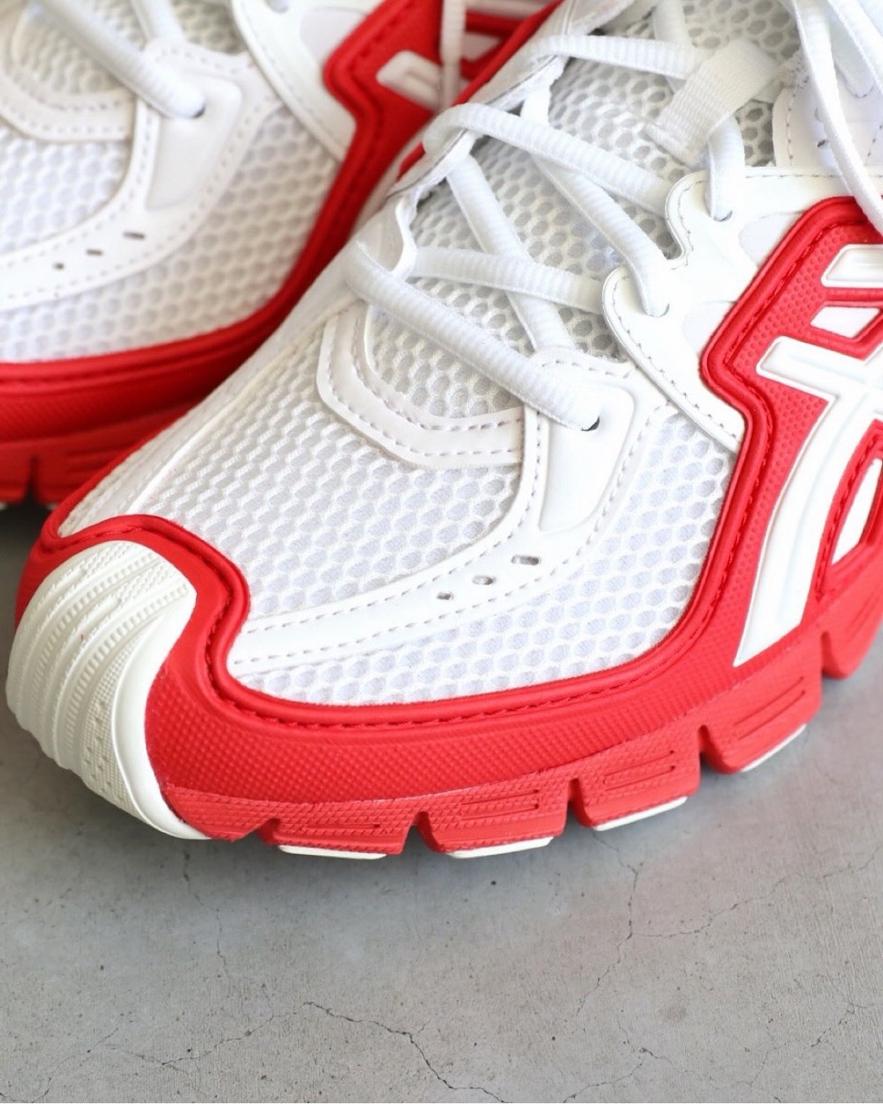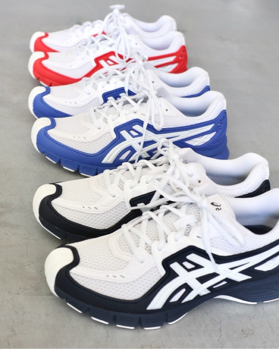 2010年代初頭のアーカイブ ASICS GEL-SD Lyte がCOMME des GARÇONS SHIRTとのコラボレーションで復刻。GEL-SD Lyteは万能型のアスレチックトレーナーだが、当時の市場では、確固たる地位を確立することはできなかった。今作ではレッド、ブルー、ブラックといった3つの定番カラーが、対照的な白いベースカラーと組み合わさり、クラシックなムードを演出。Comme des Garçons SHIRTはオリジナルのアウトソールを延長し、つま先部分まで曲線を描くように設計することで新たな特徴を生み出している。