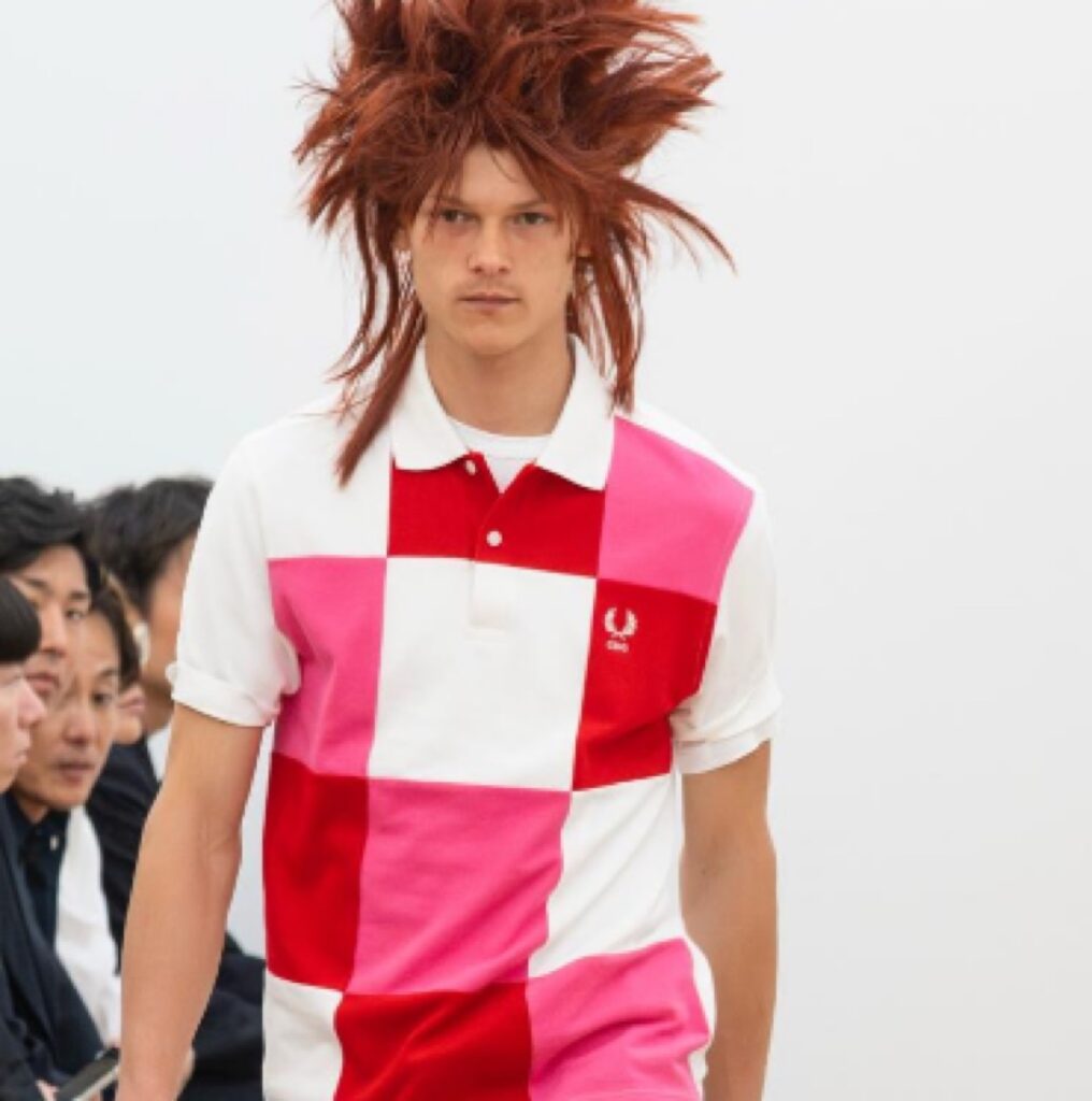 COMME des GARÇONS SHIRTとFRED PERRYによるコラボポロシャツ第4弾が登場。2024SS、2025SS、2025FWに続く今回は、ホワイト、レッド、ピンクといった三色のクレイジーパターンのパネルワークで表現し、胸元にはCDGとローレル(月桂樹)マークのダブル刺繍が施されている。