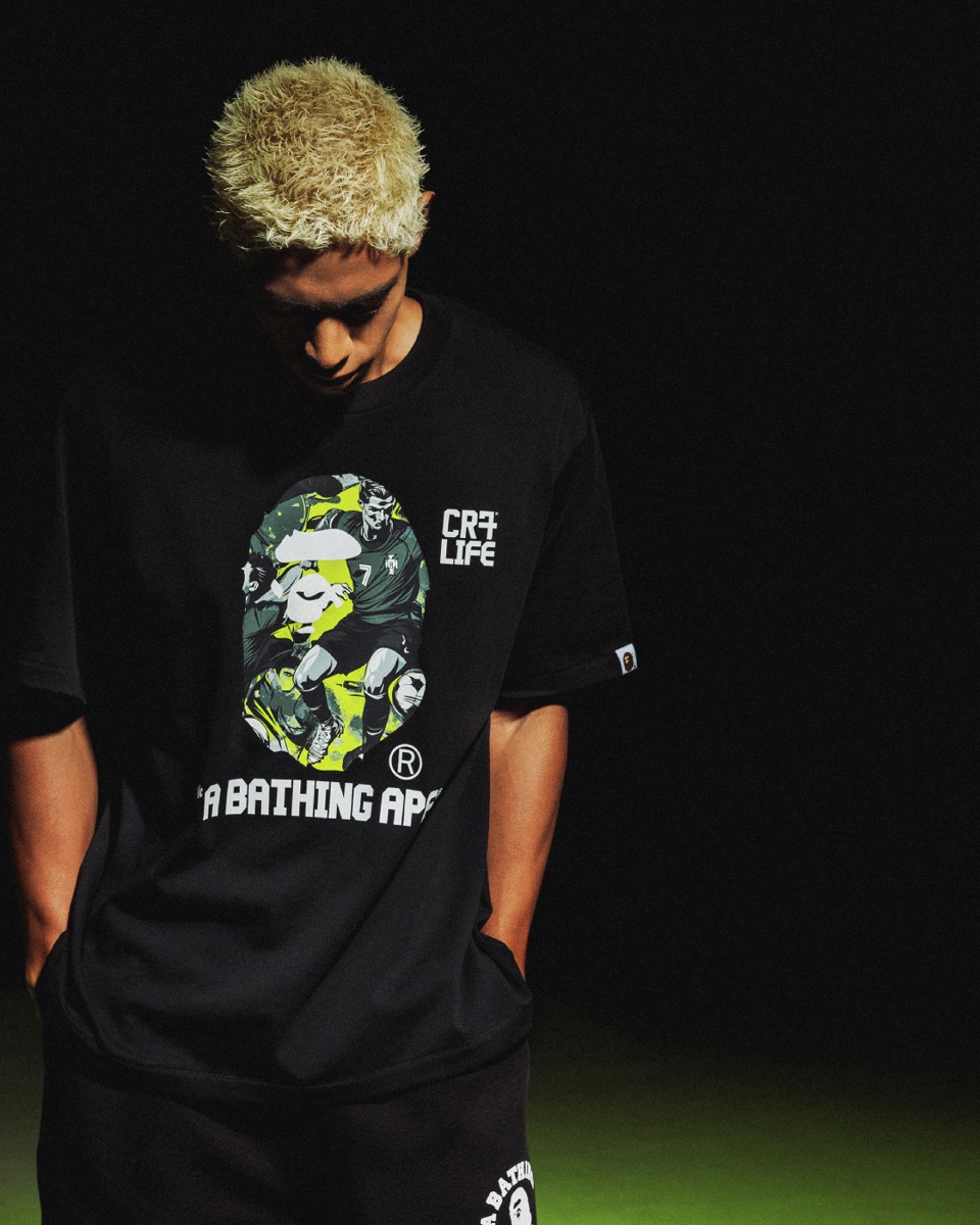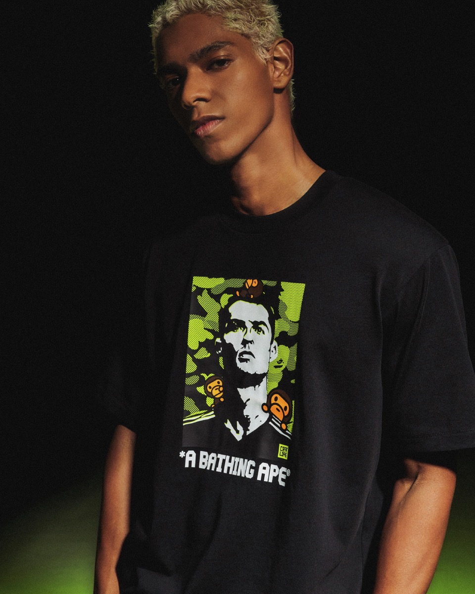 BAPE®の掲げるスローガン、FEARLESS EXPRESSIONに根ざしたBAPE®の大胆なデザインと、史上最高のアスリートの不屈の精神が融合し、スピードと威信を体現する特別なコレクションが誕生した。今回のリリースではクリスティアーノ・ロナウドの遺産からインスピレーションを得ており、BAPE®の斬新な美学をコミックスタイルのイラストと、遊び心のあるBABY MILO®デザインと融合させている。