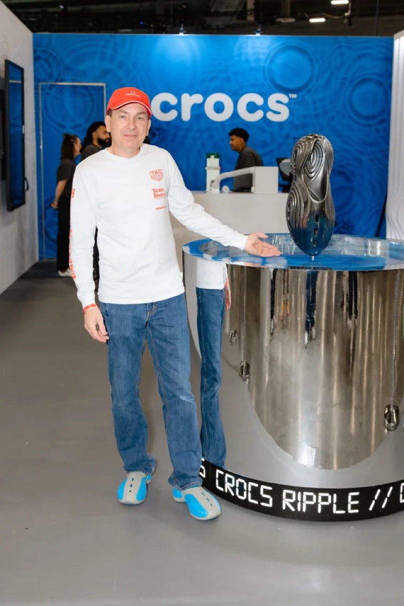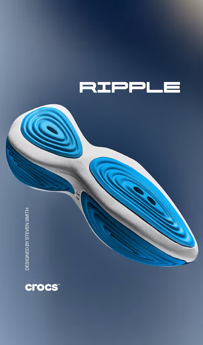 クロックスは、スニーカーデザインの巨匠であるスティーブン・スミス氏を迎え、クリエイティブ・イノベーション・チームを2024年11月から新設。同チームは、クロックスのデザイン言語をさらに進化させる新しいフットウェアモデルを生み出しており、「Crocs Ripple」は初のシルエットとなる。本アイテムは、クロックスが掲げるモールドデザインのビジョンを大胆に体現し、機能性・スタイル・イノベーションが融合する、より大きなデザインムーブメントの始まりを象徴。製品のシルエットは、ブランドデザインストーリーの次なる波を表現し、モールドフットウェアの新しいアプローチを探求するブランドの未来像を表現している。