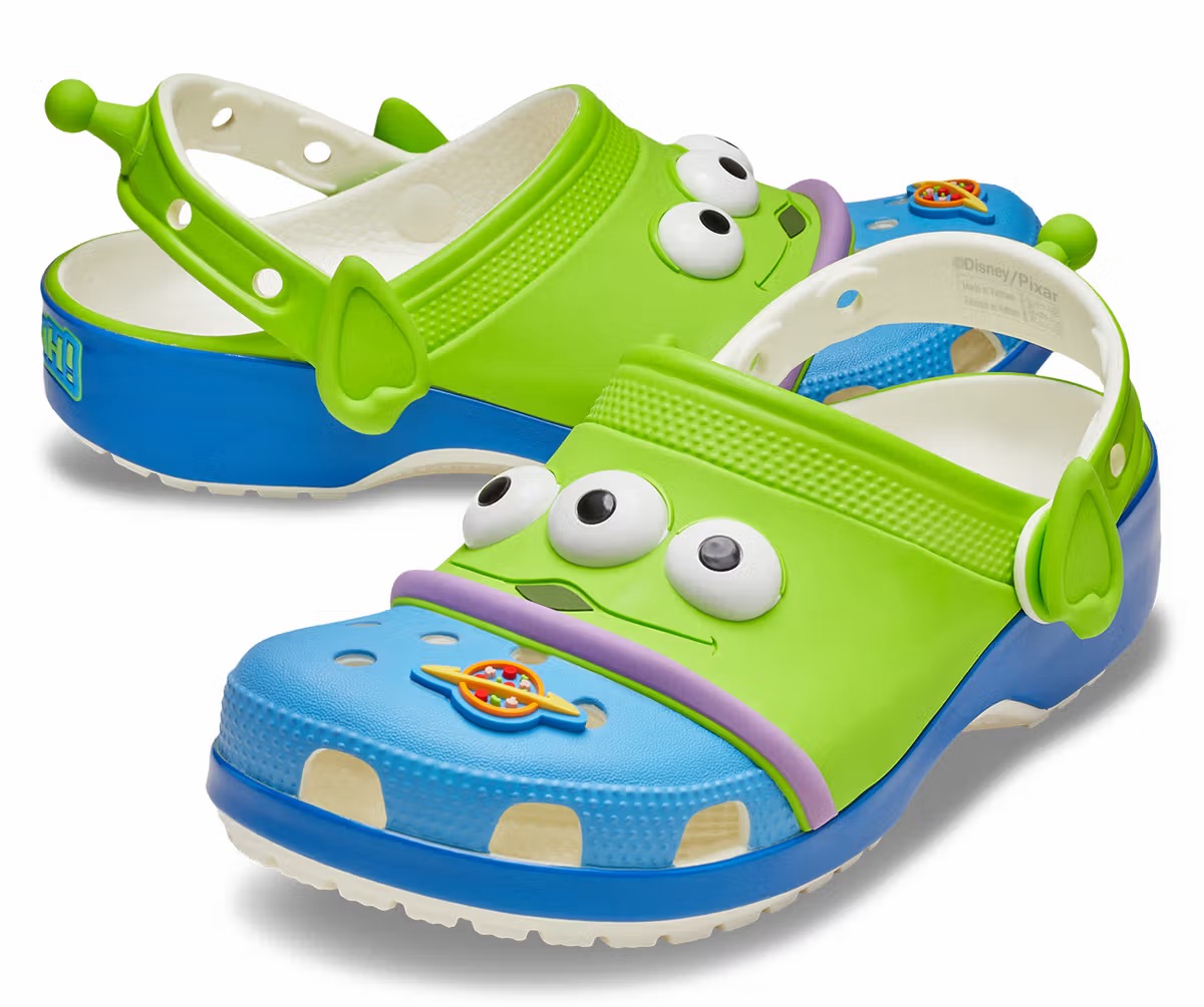 今回のコラボレーションではクロックスを代表するファーストモデル『クラシッククロッグ』をベースに採用。映画『トイ・ストーリー5』の公開に先駆けて、ジェシーとピザ・プラネットのエイリアン(リトルグリーンメン)がコレクションの主役を務める。