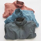 DICKIESとのコレクションでは初となるフレアシルエットのパンツは、シルエットの美しさで定評のある定番のモデルを履き心地はそのままに、膝から裾にかけて広がるBEDWINフル別注のオリジナルシルエットが完成。一方スリムフィットパンツは、定番でリリースしている9部丈の “JESSEE“ をフルレングスにアレンジしている。