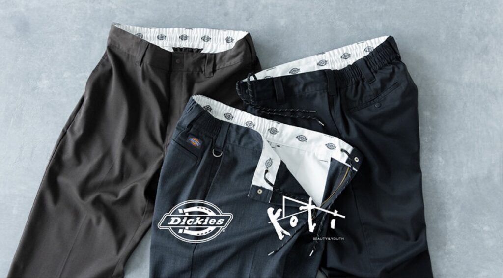 1922年設立の老舗ワークウェアブランド「Dickies(ディッキーズ)」と、United Arrows(ユナイテッドアローズ)の展開する「koti BEAUTY&YOUTH(コティ ビューティー&ユース)」による別注スラックスが、国内2025年11月28日(金)より発売予定。