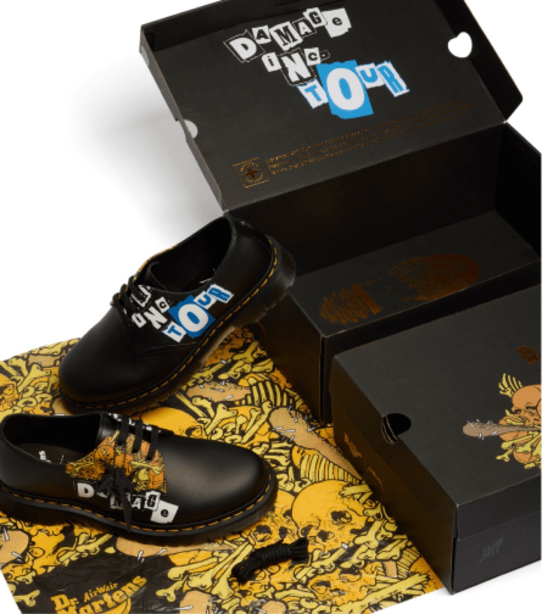 ハードコアパンクな作品でお馴染みの伝説的アーティスト「Pushead(パスヘッド)」が自ら手掛けた1460 METALLICAと1461 METALLICAには、それぞれ1988年『DAMAGED JUSTICE』と1986年『DAMAGE INC.』のビジュアルが大胆にプリントされている。細部までこだわり抜かれた仕様で、専用デザインのMETALLICA「M」ロゴ入りヒールスタッズと特製ドッグタグを装備。さらにクラシックな歌詞「BOREDOM COMES FROM A BORING MIND」をプリントした交換用シューレースが付属し、メタル全盛期を完璧に再現している。