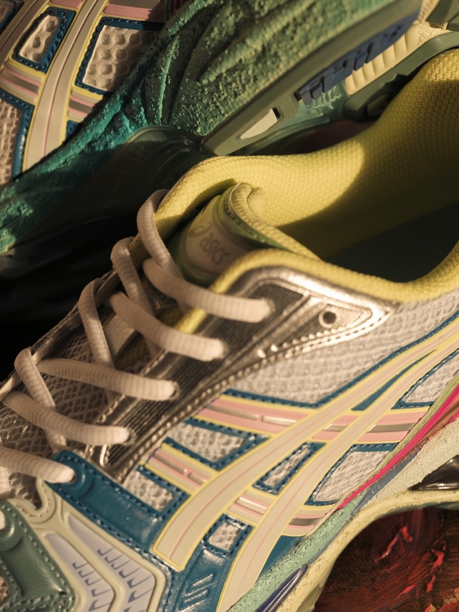 今作でベースに採用されたのは、2000年代のレトロランニングシューズ『Gel-Kayano 14(ゲルカヤノ14)』。「有機的な美しさ」をテーマに、GEL-KAYANO™ 14の現代的なデザインに、自然の鮮やかさや質感といった風光明媚な自然美を各所に取り入れている。モデル全体には約30色に及ぶカラートーンを採用し、植物や土、光や水などの自然要素の色彩を表現。アッパーメッシュはつま先、外側、内側でそれぞれ編み目の異なるメッシュを使用し、見る角度によって異なる表情を楽しめる仕上がりとなっている。