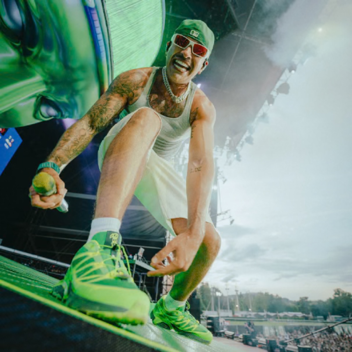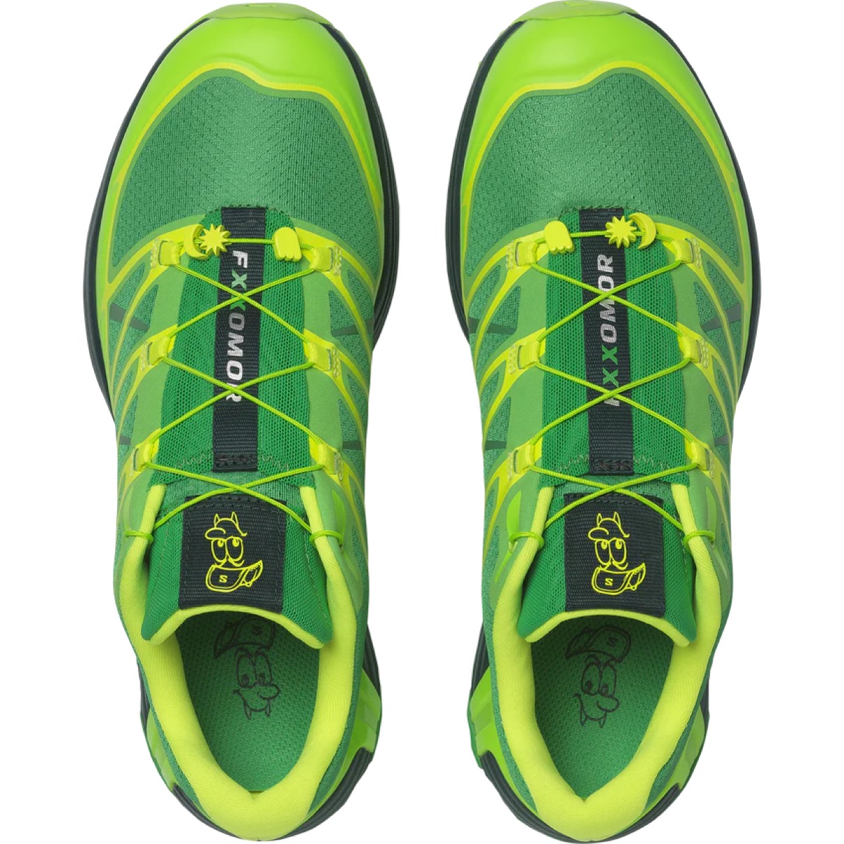 サロモンの定番モデル『XT-PATHWAY(XT-パスウェイ)』は、SensiFit™ と Quicklace™ の組み合わせや安定性の高いシャーシ構造など、XT シリーズの特徴的な機能を兼ね備えている。今回登場するコロンビアのスーパースターとのコラボモデル Feid x Salomon XT-Pathway 2 は、派手で大胆、そしてFeidらしい一足。ニューヨークで開催されたガバナーズ・ボールでのパフォーマンスで、Feidはこのコラボレーションモデルを着用。ストリートウェアスタイルのために作られたこのデザインは、アーバンミュージックアーティストによる唯一無二の作品で、彼のシグネチャーグリーン、暗闇で光るディテール、そしてキャリアの重要な瞬間を象徴するカスタムチャーム(太陽、月、ゴースト)があしらわれており、タンには “FXXOMOR”の文字が漫画グラフィックのカスタムタグと共に落とし込まれている。