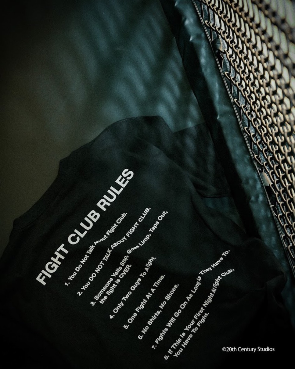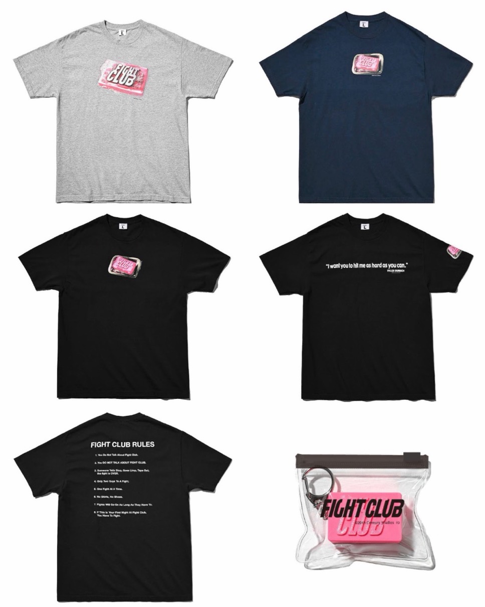 本コレクションでは、映画『Fight Club』を象徴する「石鹸」にフォーカスし、90年代当時と同じ製法であるシルクスクリーンプリントでインクはプラスチゾルを使用、石鹸7版の多色プリントで細やかに表現したTシャツをリリース。着込んでいくことで、当時と同じ風合い、雰囲気、割れ感を再現できるようインクの厚みや重なりなどのディティールを徹底的に追求した90s特有の空気感を再現した仕上がりとなっている。ボディは、90sの雰囲気を意識して、敢えて「在りもの」ボディを採用。ウォッシュ加工タンブラー乾燥を施すことで、はじめから抜け感のある雰囲気に仕上げている。コピーライトも入った90s-00sの雰囲気を忠実に再現した仕上がりとなっている。