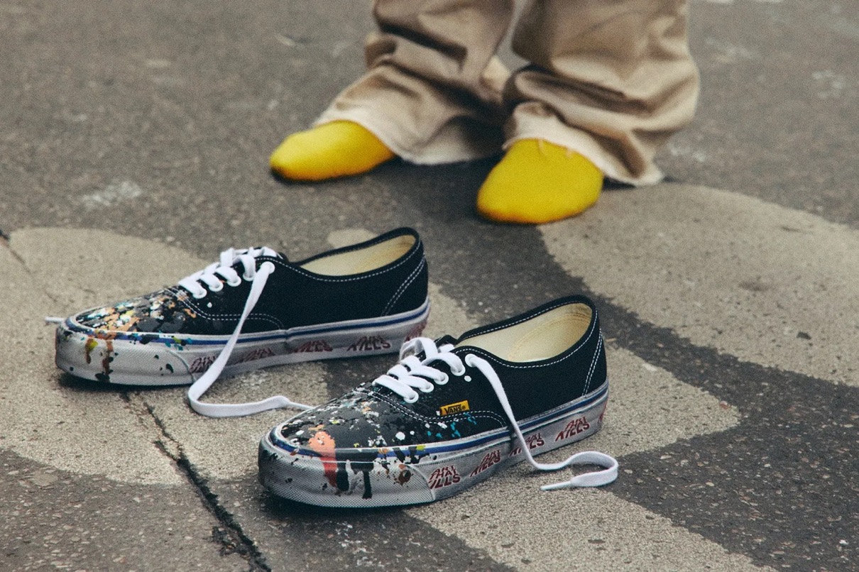 再利用と再構築をテーマに掲げ、新たなアイテムを生み出すロサンゼルスのブランド、GALLERY DEPT.とVANSの新作コラボレーションでベースとなるのは、現代的な設計と洗練されたデザインによってフォルム、フィット感、履き心地を追求したフットウェアシリーズ「VANS PREMIUM CLASSICS」の『AUTHENTIC REISSUE 44(オーセンティック リイシュー 44)』。今年春にリリースされたベージュに続く今回は、ブラックのキャンバスアッパーに、大胆なマルチカラーのペイントが散りばめられている。このデザインは、同ブランドがアシックスGT-2160で手掛けたデザインを反映。 ミッドソールのサイドウォールには、印象的なレッドの “Art That Kills”のブランドスローガンが妥協を許さない芸術表現の本質と力強さを象徴。さらに、フォクシングテープに沿った半透明のブルーのストライプがコントラストを生み、アーティスティックな魅力を高めている。 スニーカーのルーツに忠実に、バルカナイズドラバーソールとワッフルアウトソールを採用し、時代を超えたタッチを表現した。