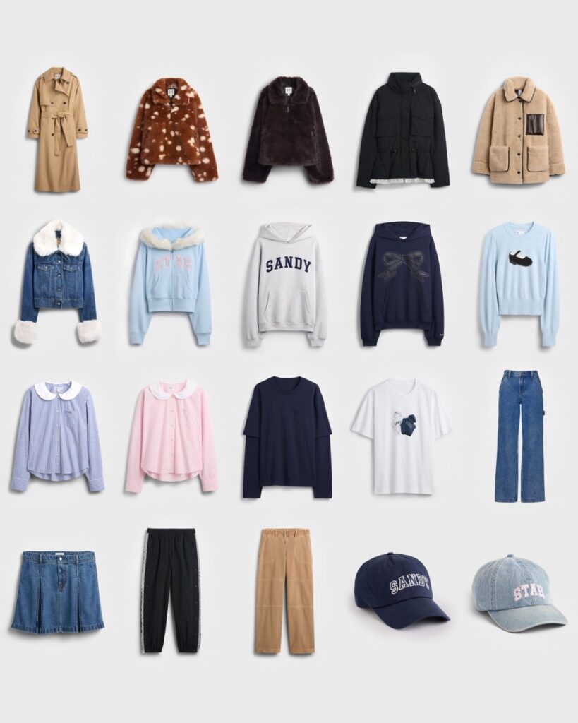 サンディ・リアンは本コレクションについて次のように語った。—-「子供の頃、Gapはファッションの象徴でした。そんな大切にしてきたブランドと共にクリエーションを手掛けられることは、本当に特別で感慨深い体験です。幼い頃に憧れた存在でありながら、今もなお時代と共鳴し続けていることに驚かされます。『Sandy’s Dream Closet』は、Gapを身にまとうことで抱いていた子供時代の想い、いつか大人になった自分はどんな人になるのだろう、という夢や空想を形にしたものです。子供の頃に私にとって特別な意味を持っていたアイテムを今の視点から再構築し、時代を超えて愛されるGapのアイコニックなスタイルに敬意を払いつつ、あらゆる形のガーリースタイルを称えるコレクションを作りたいと思いました」—-。