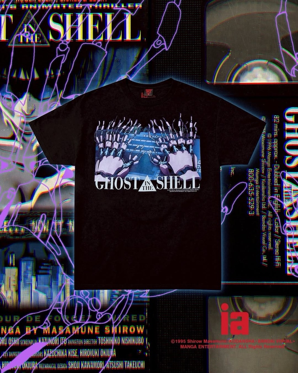 ギークスルール x 『GHOST IN THE SHELL / 攻殻機動隊』コラボTシャツがGhost and the Shell展に登場。インフィニット アーカイヴスとのトリプルコラボも。