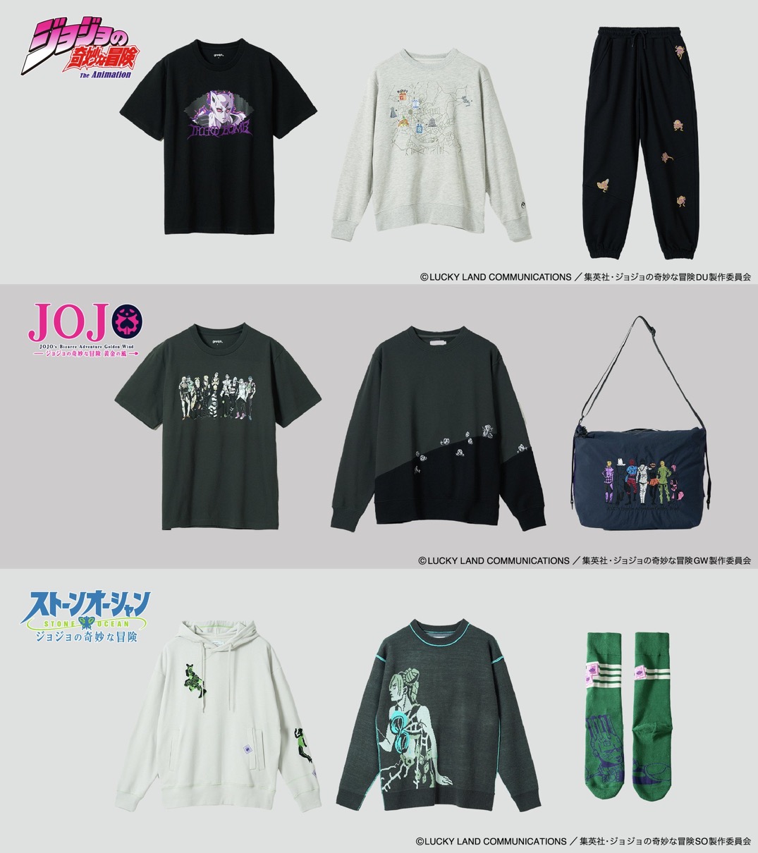 グラニフ x アニメ ジョジョの奇妙な冒険によるコラボアイテム第4弾が登場。今回は「ダイヤモンドは砕けない」「黄金の風」「ストーンオーシャン」をピックアップ。