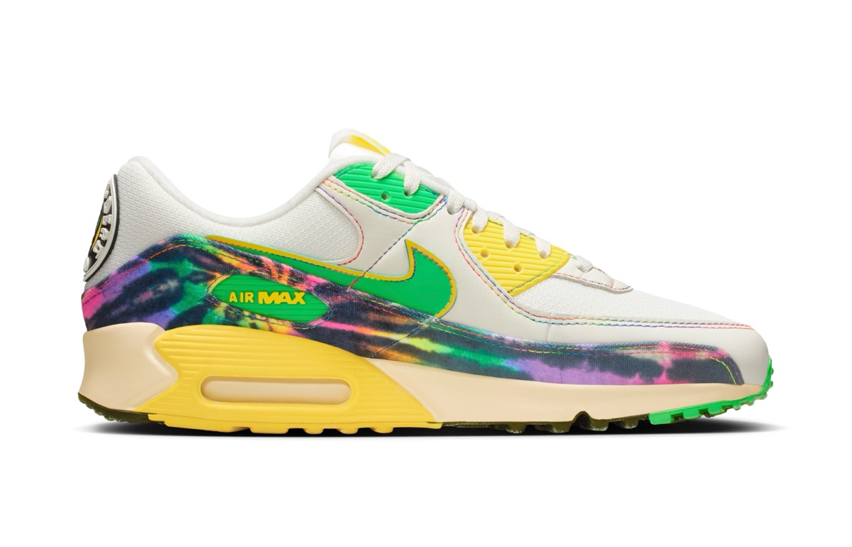 ヒッピー・サイケデリック文化の代名詞的ロックバンド「Grateful Dead(グレイトフル・デッド)」と、ナイキの創業者フィル・ナイトの母校でも知られるオレゴン大学(University of Oregon)のチーム「Oregon Ducks(オレゴン・ダックス)」、米スポーツブランド「Nike(ナイキ)」によるコラボスニーカー Air Max 90 “Grateful Ducks”が、現地時間2025年10月24日に発売予定