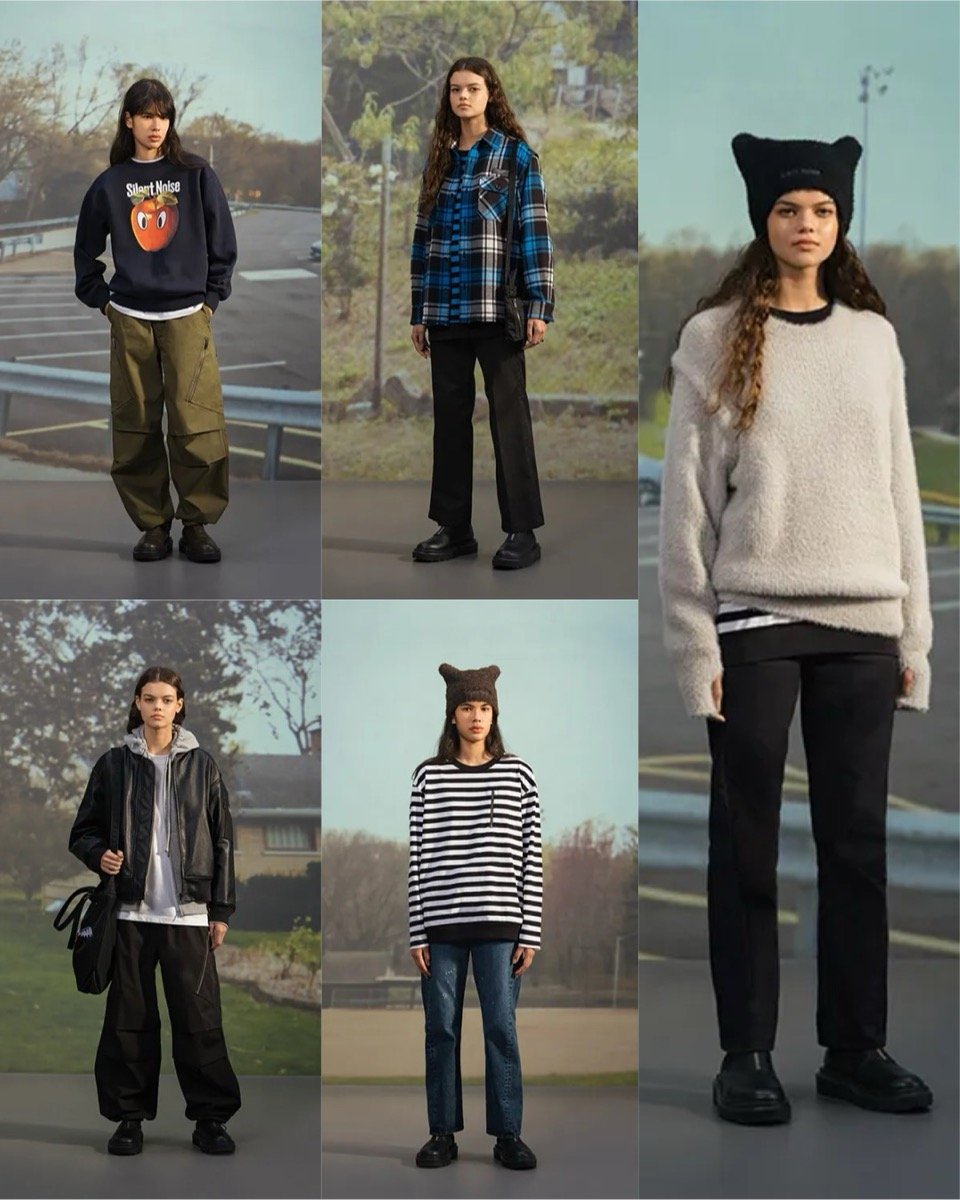 で着用できるブルゾンや、25 年春夏コレクションで登場した架空のハンバーガーショップ「ノイズバーガーショップ」の新グラフィックをプリントしたヘビーウェイトスウェット、25年秋冬コレクションの特徴的なディテールであるシガレットポケットをデザインしたユーティリティパンツなど、定番アイテムの新たな一面を楽しめるラインナップ。