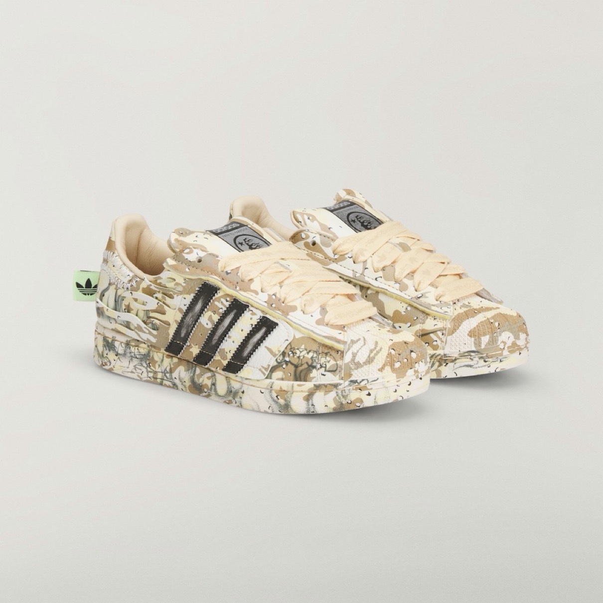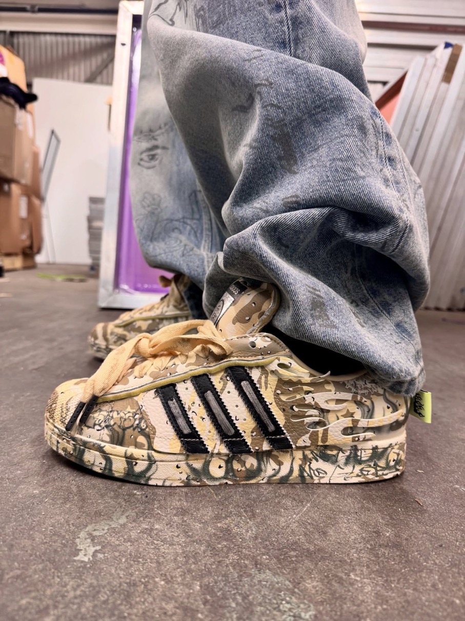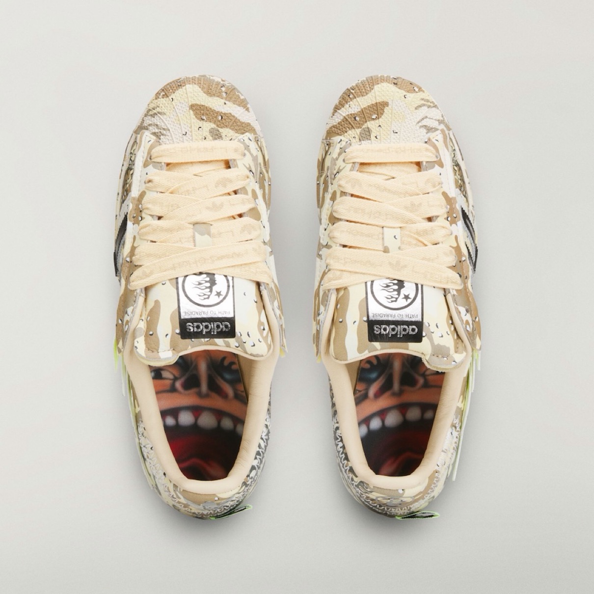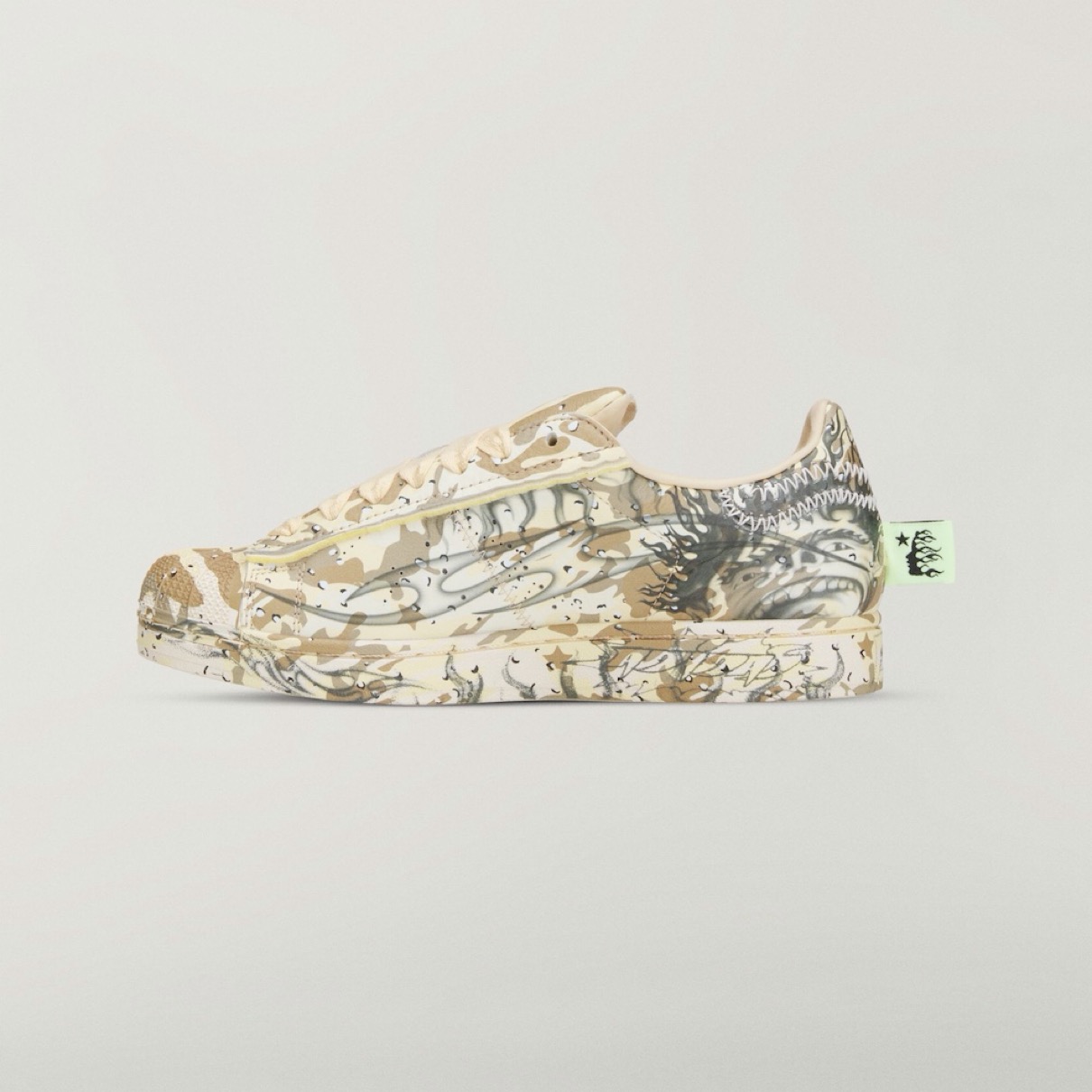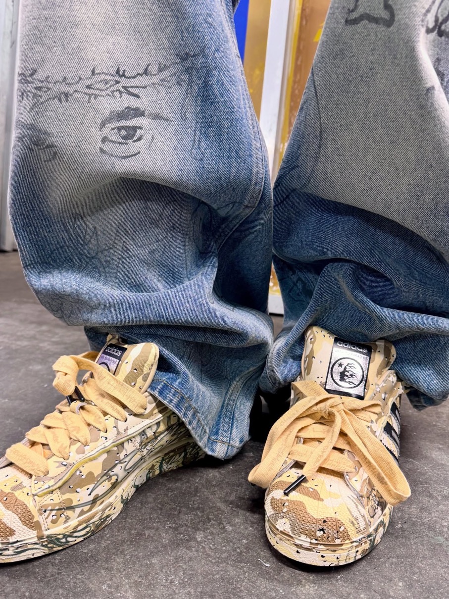 アディダスのアイコンシューズ「スーパースター(SUPERSTAR)」と、NBAプレーヤー アンソニー・エドワーズ(Anthony Edwards)のシグネチャーシューズ『Anthony Edwards 1(アンソニーエドワーズ1)』をヘルスターがアレンジ。「暗闇に光を灯す」というコンセプトと不屈の精神に着想を得たこれらのモデルは、デザートカモフラージュのグラフィックとHellstarのブランディングが特徴。コレクションにはアパレルアイテムも含まれ、カモフラージュプリントのバスケットボールショーツ、グレーのフーディー、エドワーズのビッグヘッド漫画グラフィックをプリントしたTシャツなどがラインナップする。